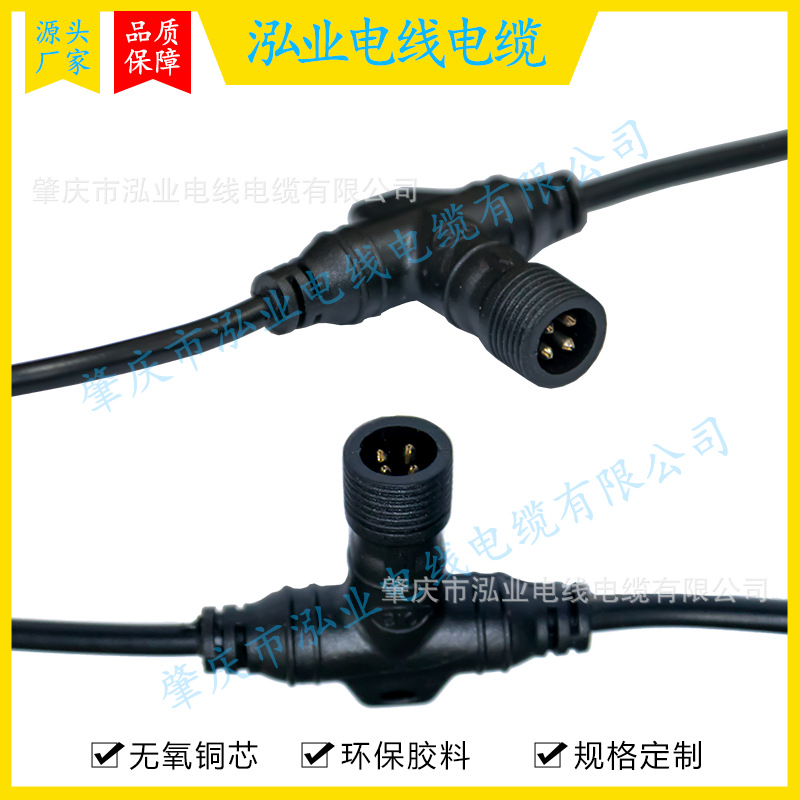 m12防水插头 4芯5芯6芯T型防水连接器led灯条三通防水插