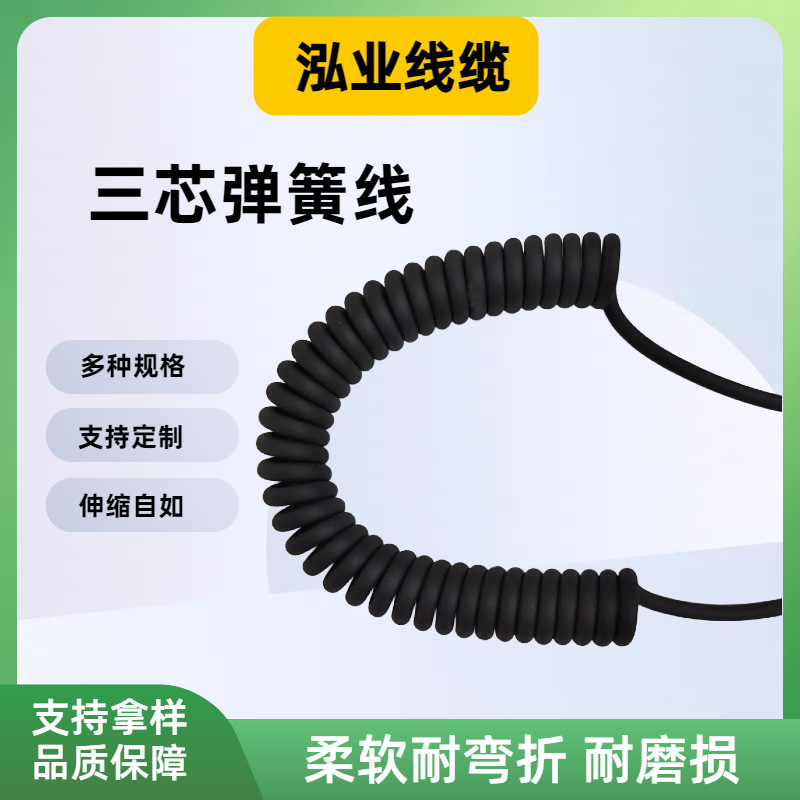 厂家TPU弹簧线3芯高弹性可伸缩无氧铜音频影音设备螺旋伸缩电源线