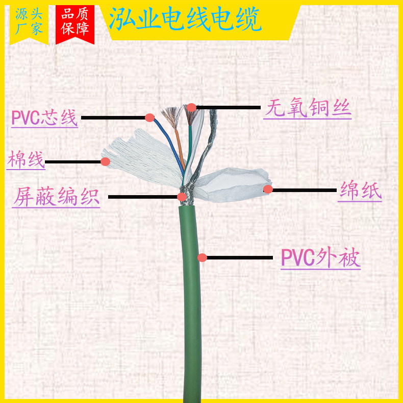 泓业多芯控制电缆铜芯环保胶料多色芯线工业线缆规格定制源头厂家
