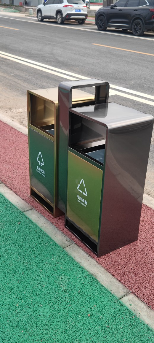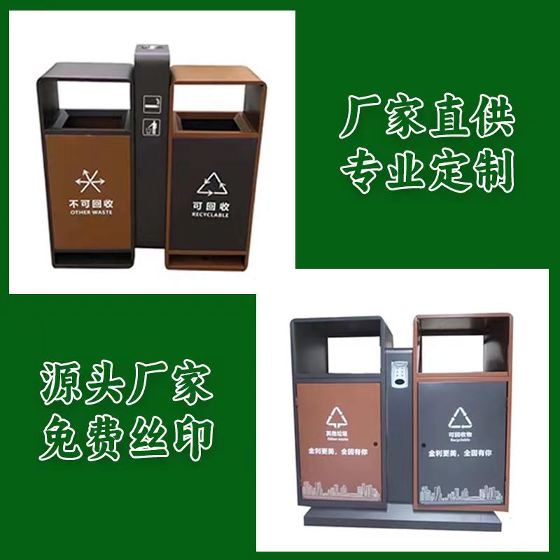 广东户外公园景区市政街道电梯口商用不锈钢镀锌板分类垃圾桶厂家