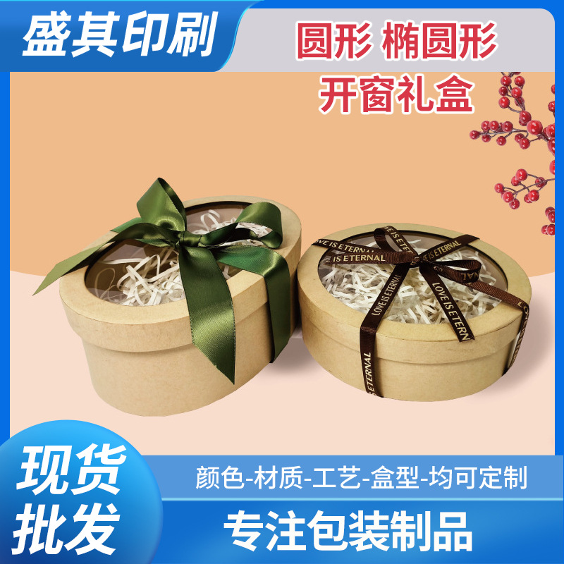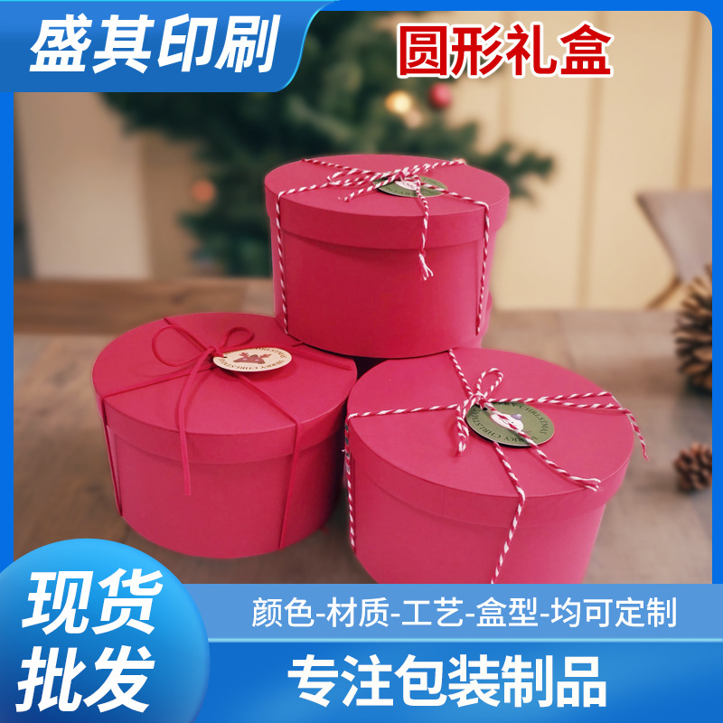 加大号圆形礼盒水果鲜花礼品包装盒大圆盒牛皮纸定制批发化妆品盒