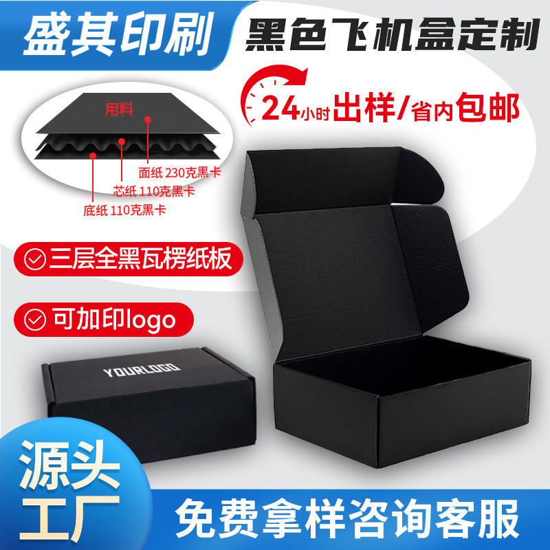 黑色饰品包装飞机盒 电商通用加厚礼品盒印刷定制批发电商打包盒