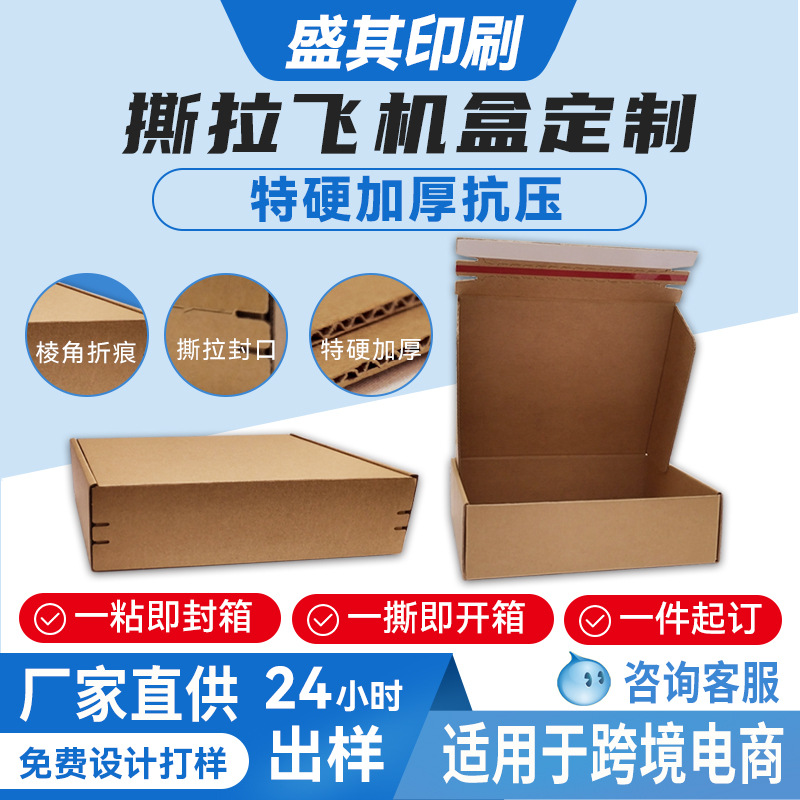 批发特硬撕拉式自粘飞机盒加厚三层硬牛皮拉链纸盒电商快递包装盒