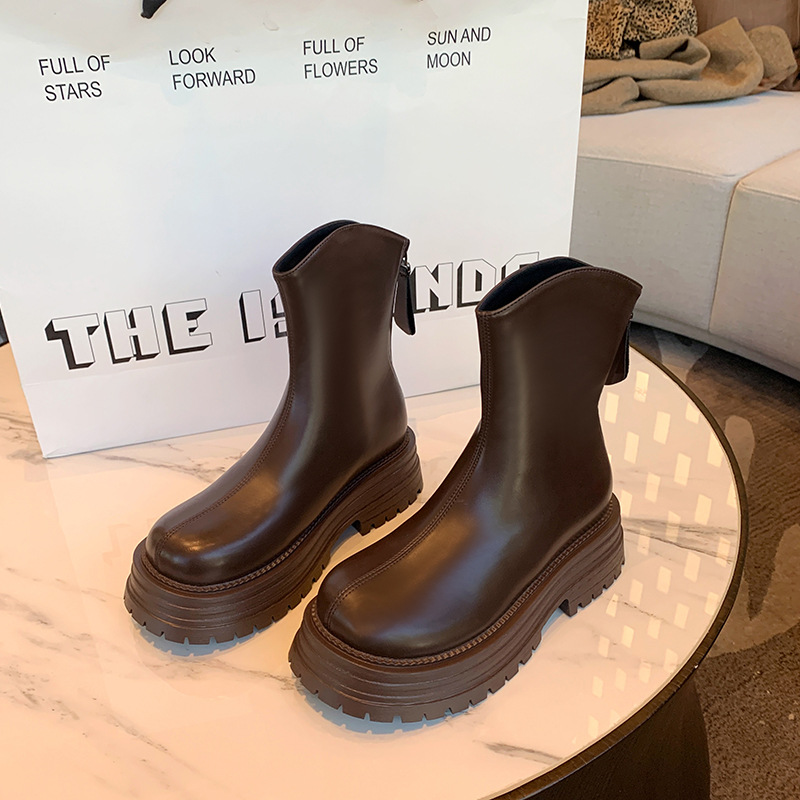 胖mm粗跟复古英伦风短靴大筒围马丁靴腿粗加宽加肥大码女鞋41-43