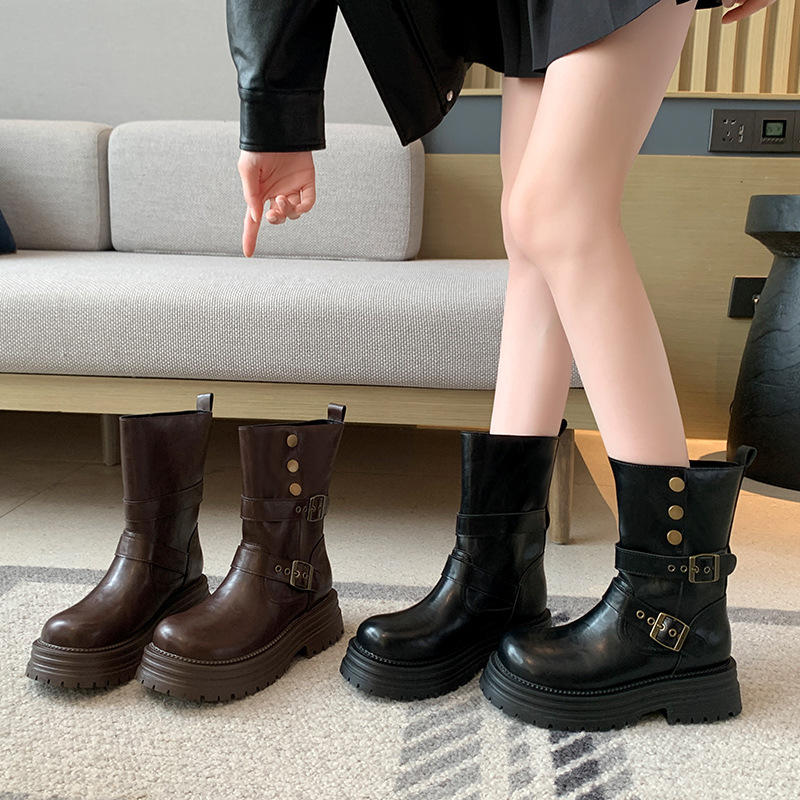 胖mm2025新款英伦风马丁靴厚底大筒围短靴西部牛仔靴加宽大码女鞋