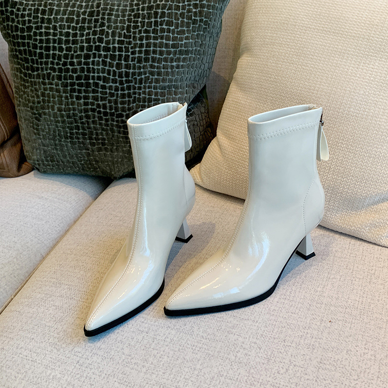 胖mm2025秋冬尖头7CM高跟女细跟短靴粗腿大筒围加宽大码女鞋41-43