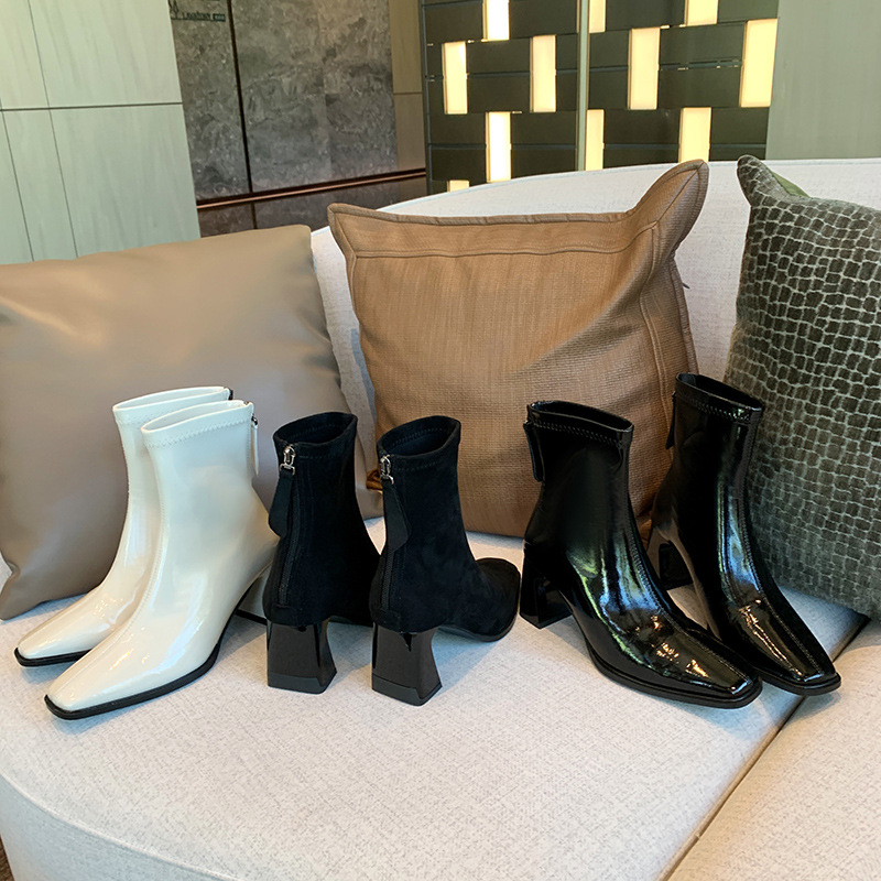 胖mm2025秋冬时尚百搭方头粗跟短靴大筒围高跟靴加肥加宽大码女鞋