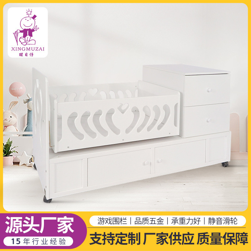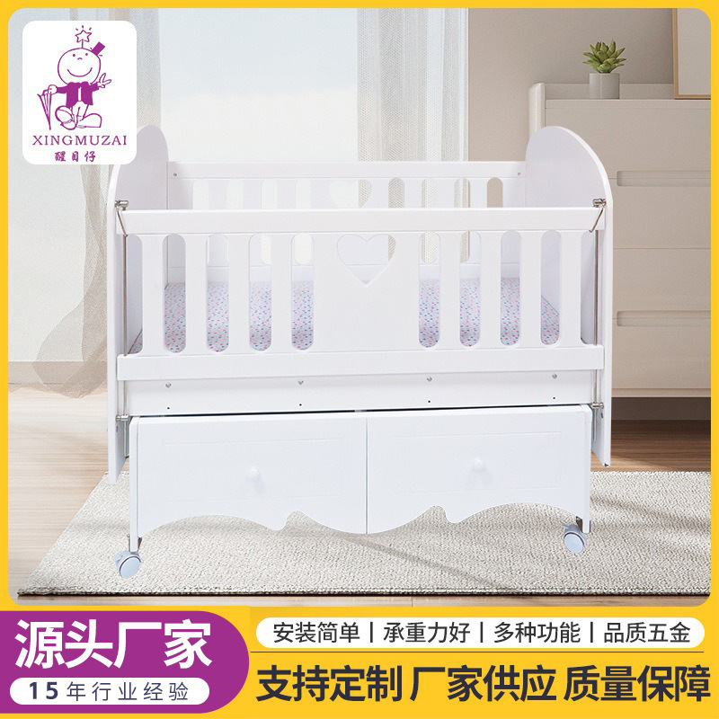 定制婴儿床多功能松木珠光白床新生儿摇篮床0-3岁宝宝童床带滚轮