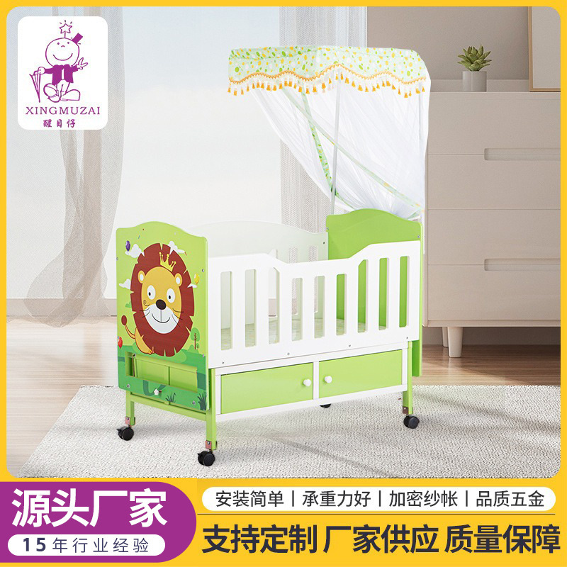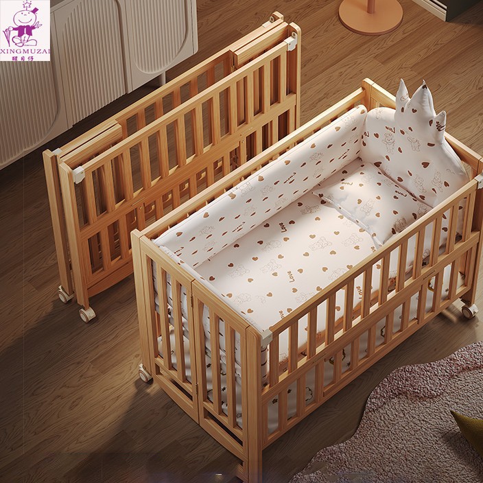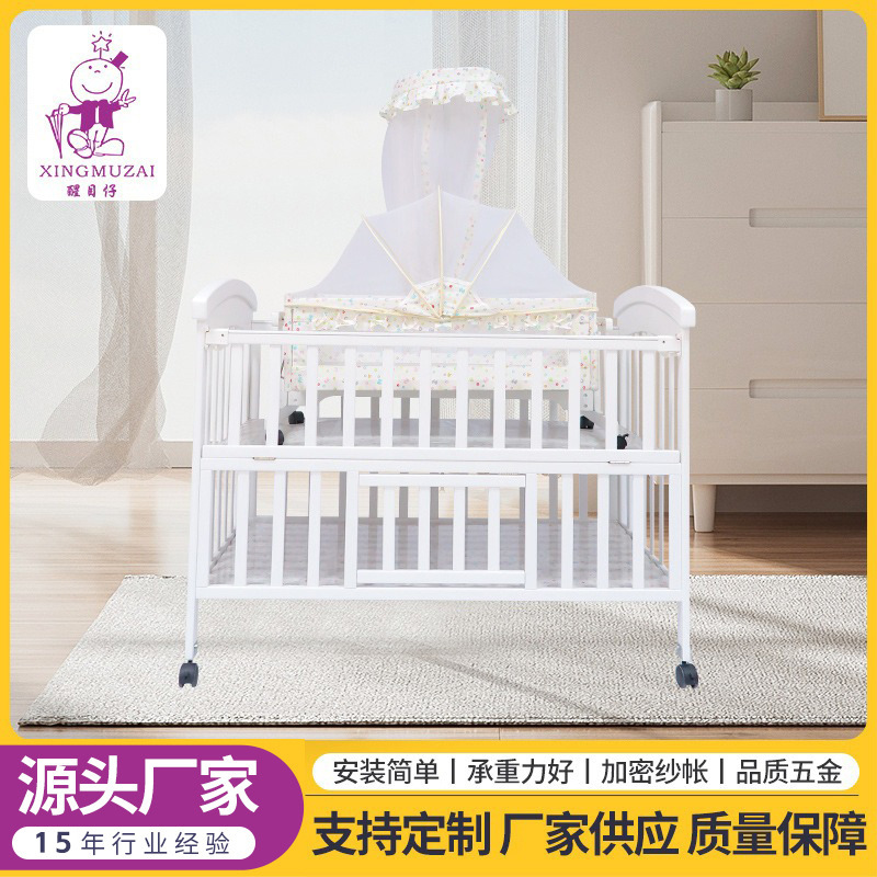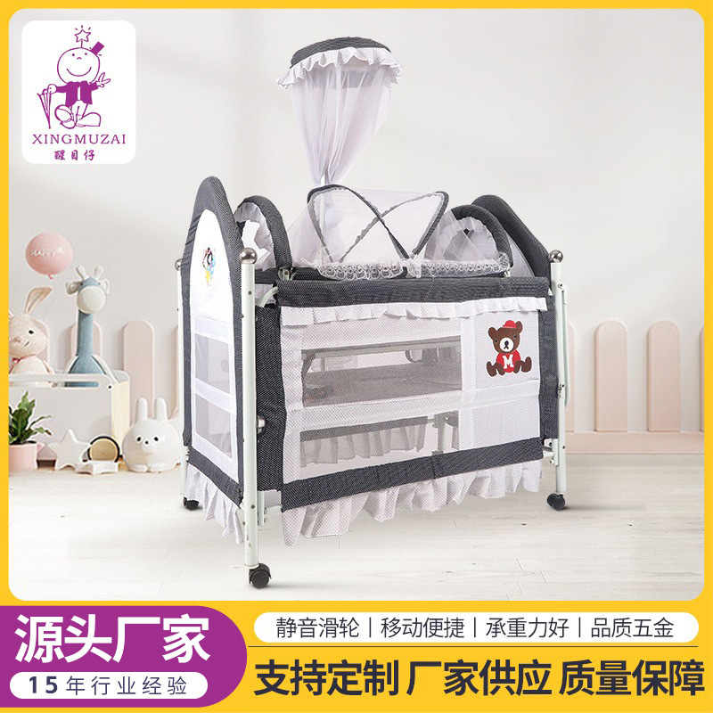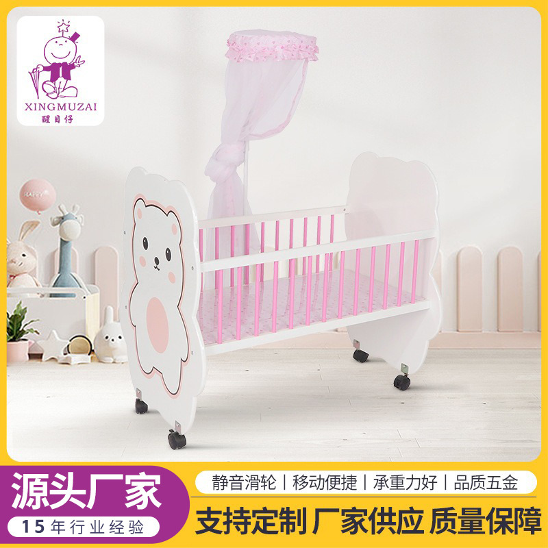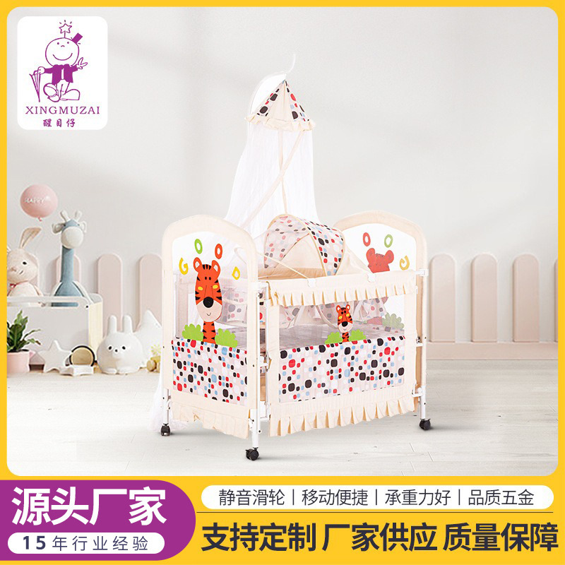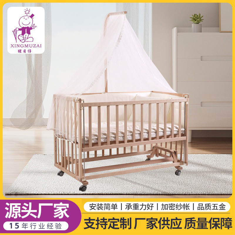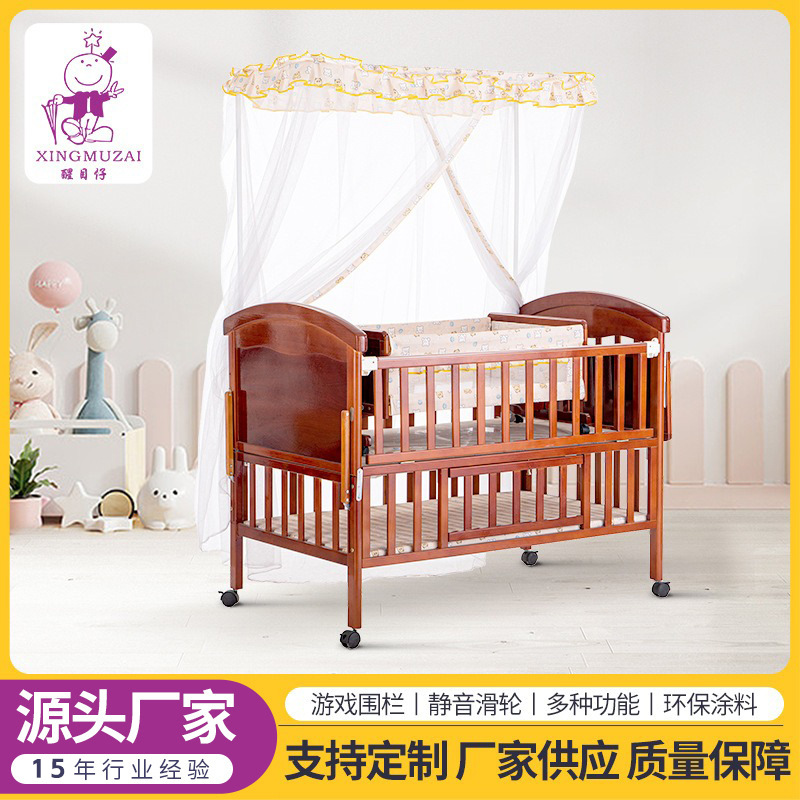工厂批发婴儿床榉木亚克力宝宝床榉木摇篮床游戏床多功能bb床批发