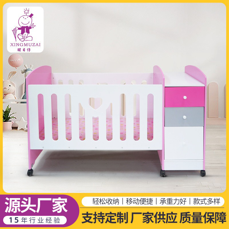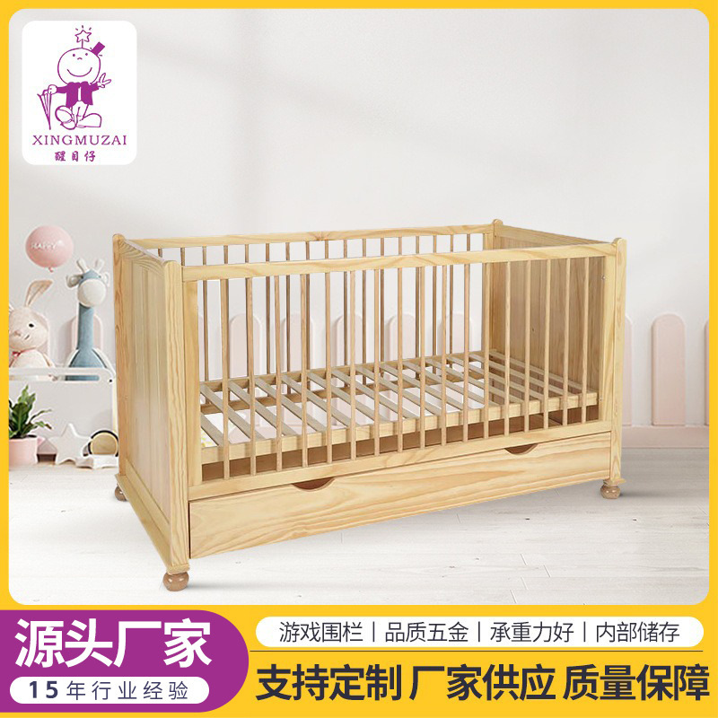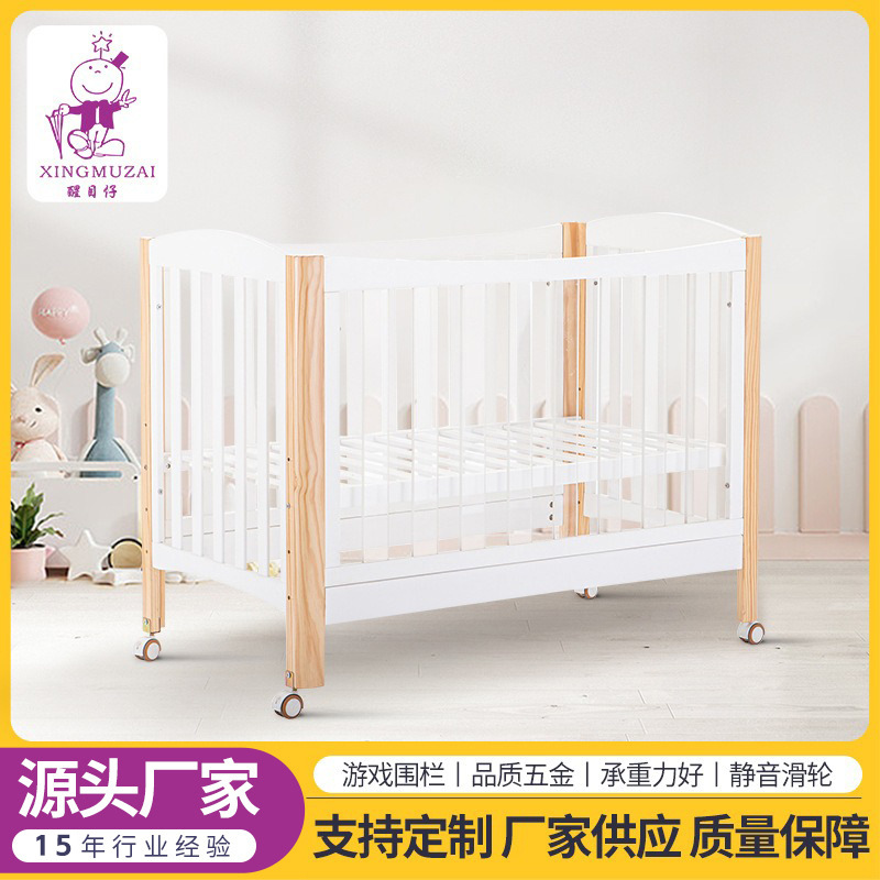 定制婴儿床松木床新生儿摇篮床0-3岁宝宝童床带滚轮bb床