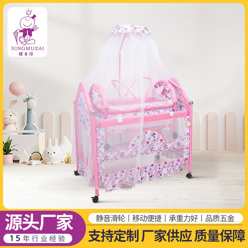 醒目仔婴儿床金属卡通宝宝摇床带滚轮多功能加大游戏bb床批发