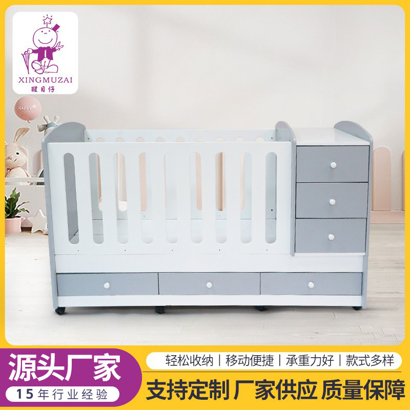 跨境专供婴儿床拼接大床松木多功能摇篮床儿宝宝床可移动儿童床