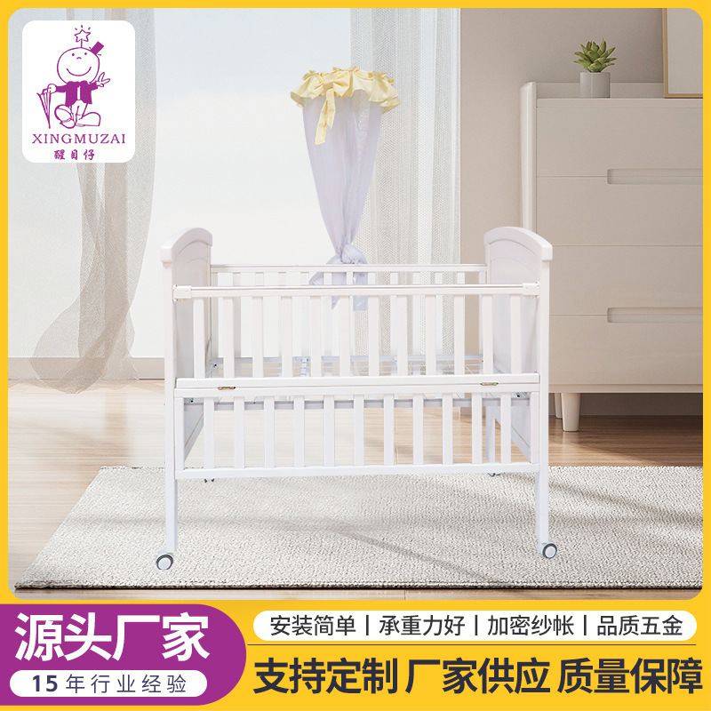 厂家直供婴儿床松木床新生儿摇篮床0-3岁宝宝童床带滚轮bb床
