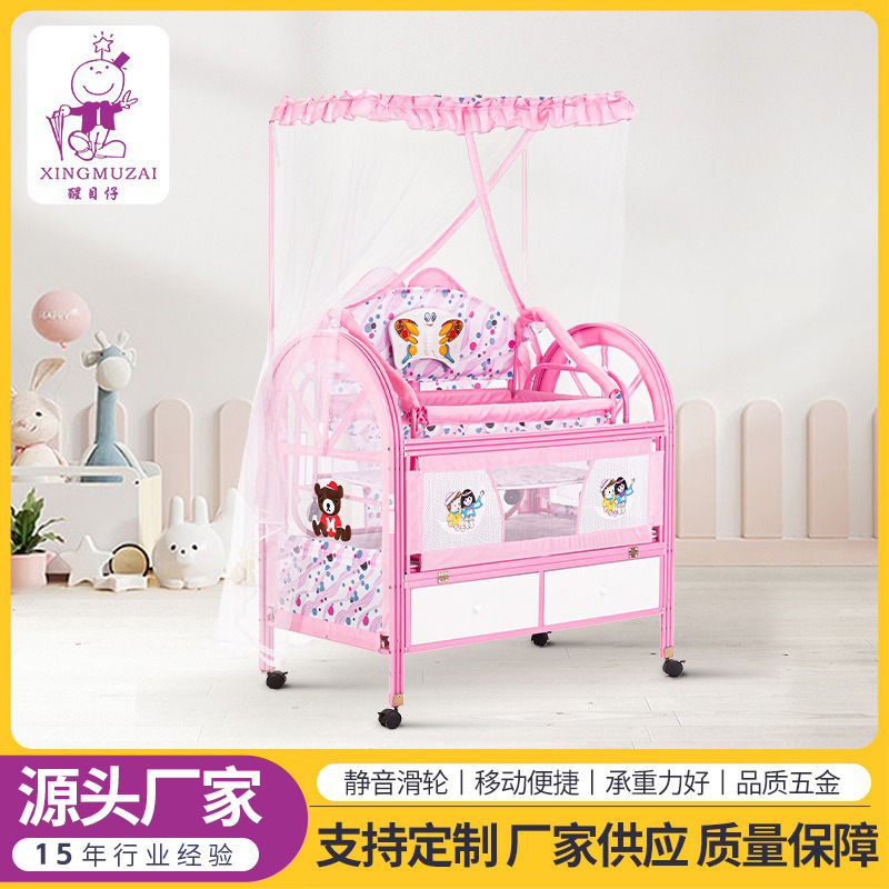外贸批发铁艺婴儿床宝宝摇篮床多功能新生儿童床可移动便携式摇床
