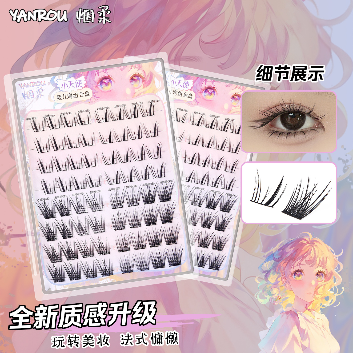 烟柔小天使假睫毛狐系斜飞婴儿弯组合免胶睫毛上镜浓密眼尾拉长