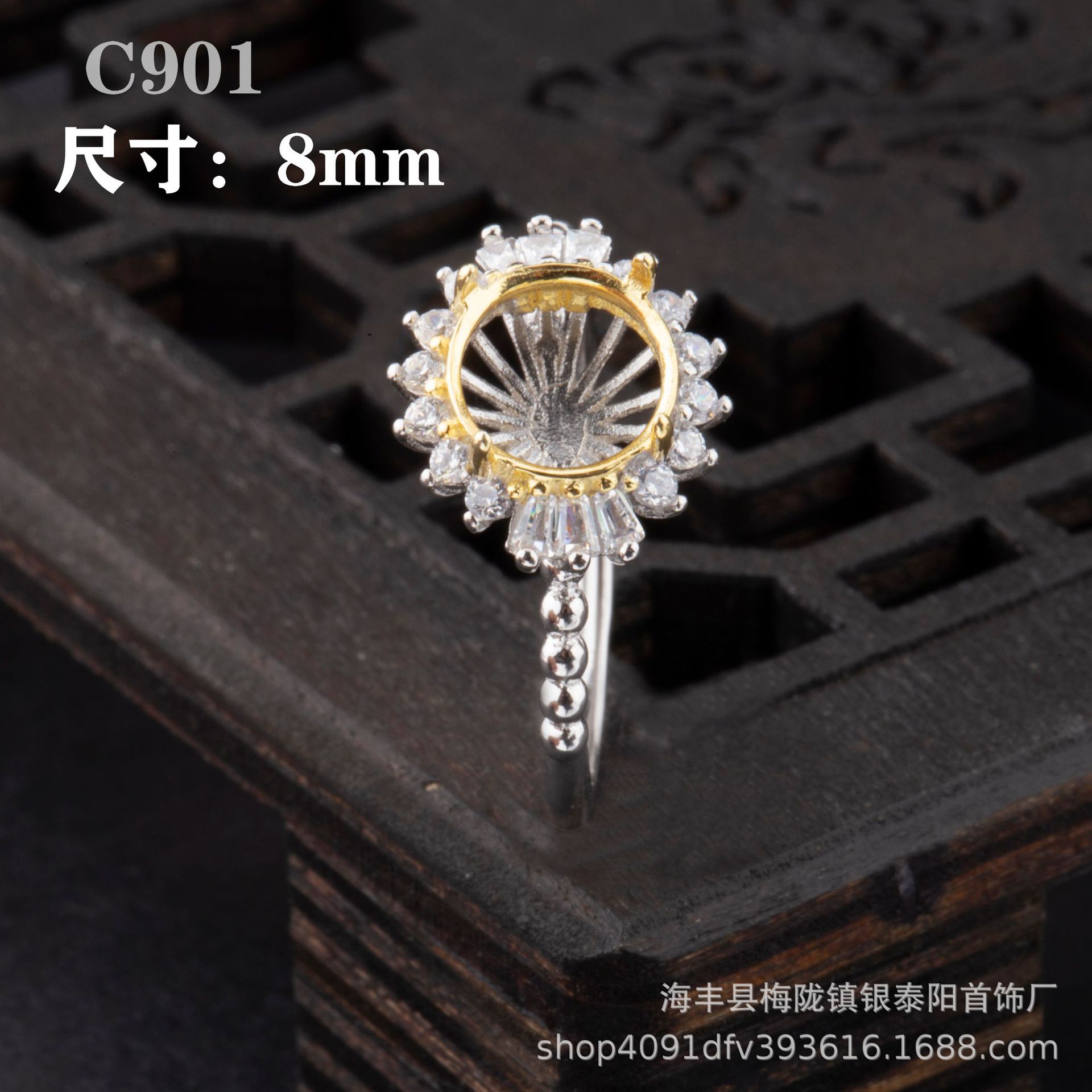 s925纯银托戒指高级感翡翠蛋面空托危料戒托配饰女自律戒指批发