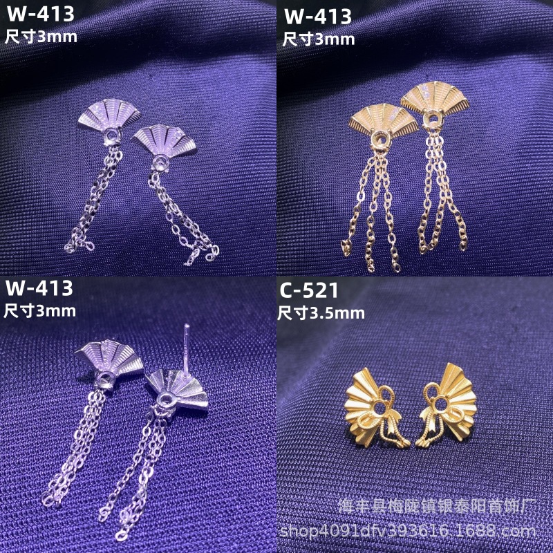 s925纯银高级感女扇子耳钉空托精品翡翠耳吊流苏diy耳环配饰批发