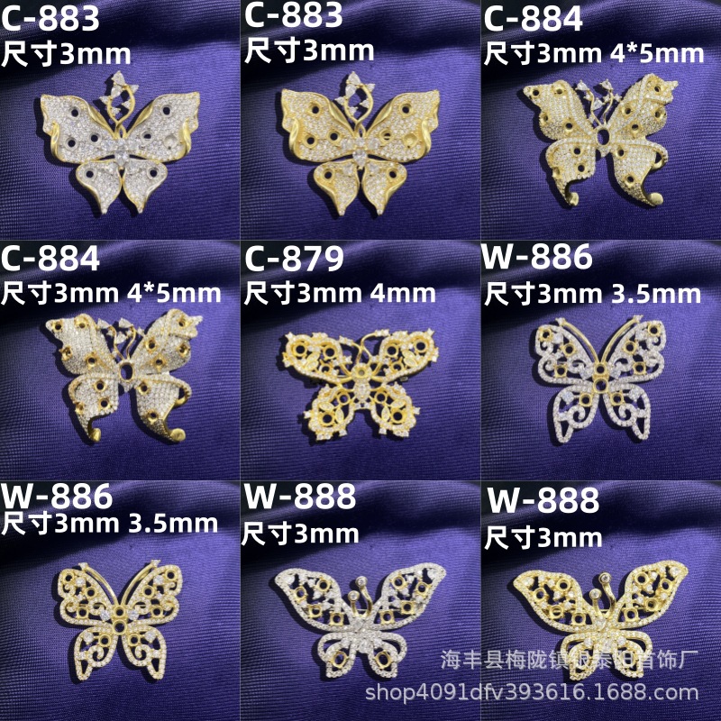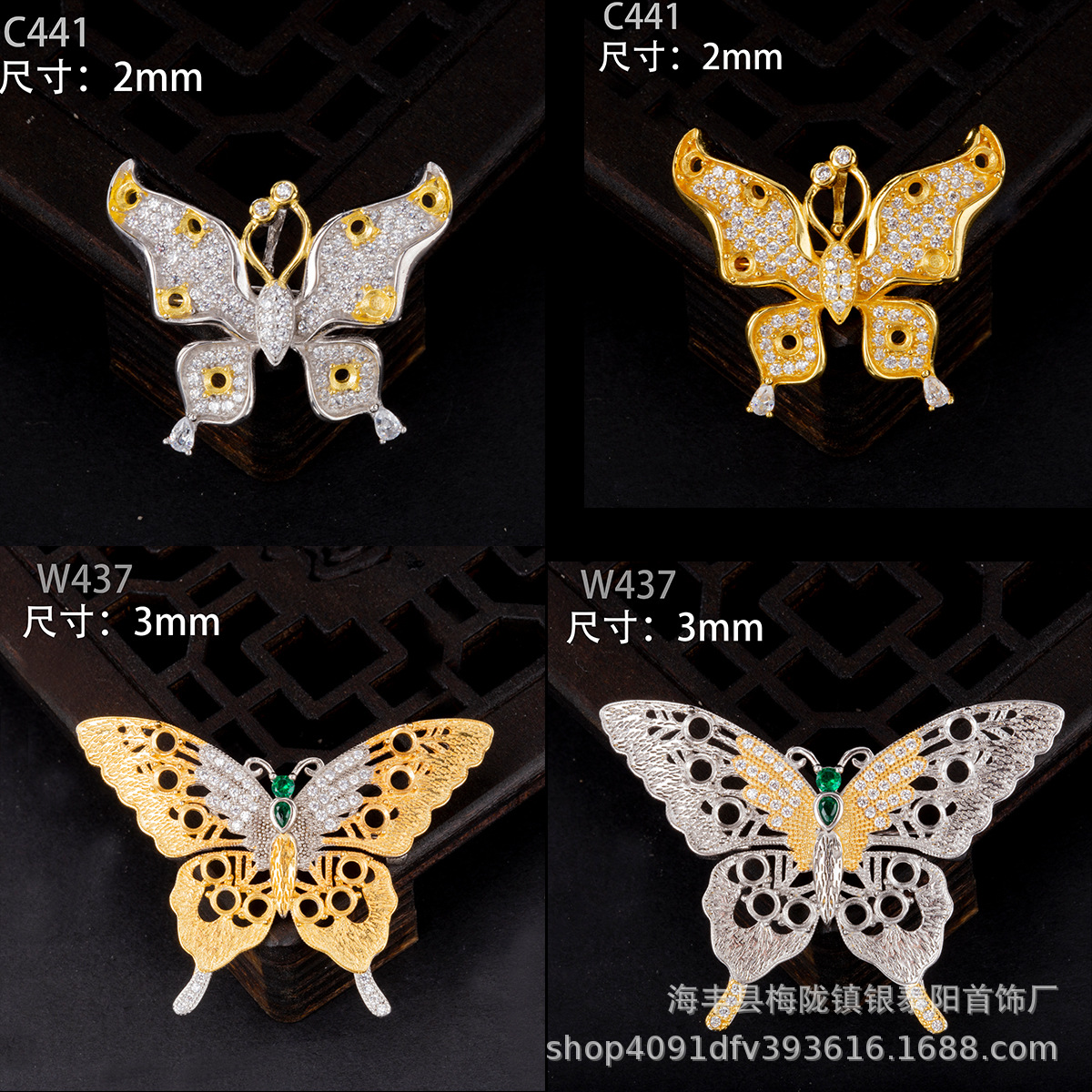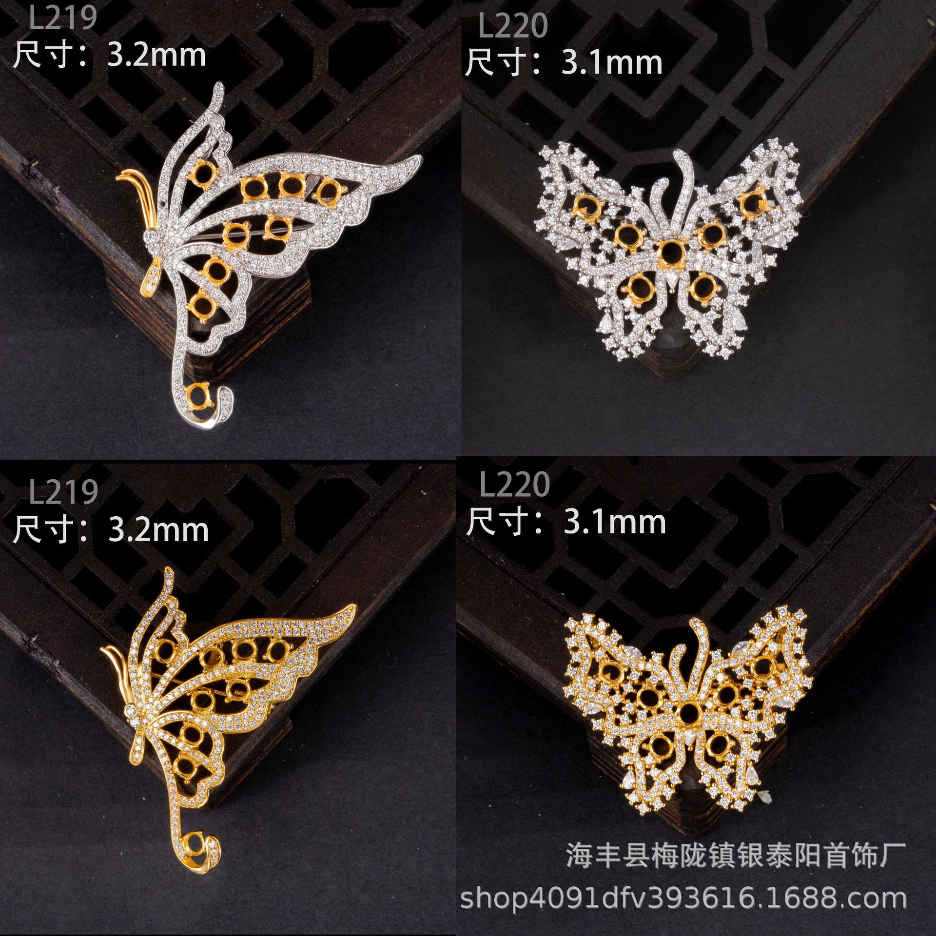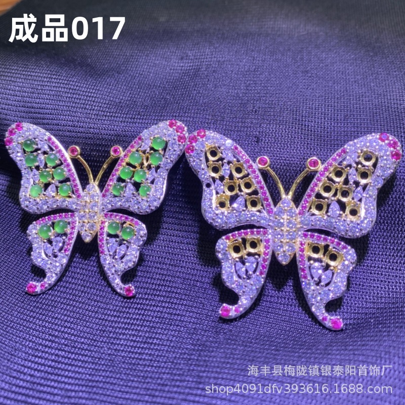 s925胸针银托吊坠翡翠托未镶嵌蛋面时尚危料蝴蝶空托精工吊件