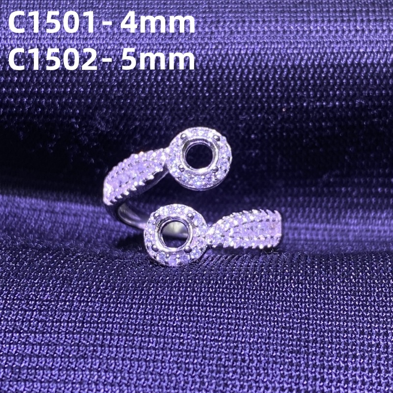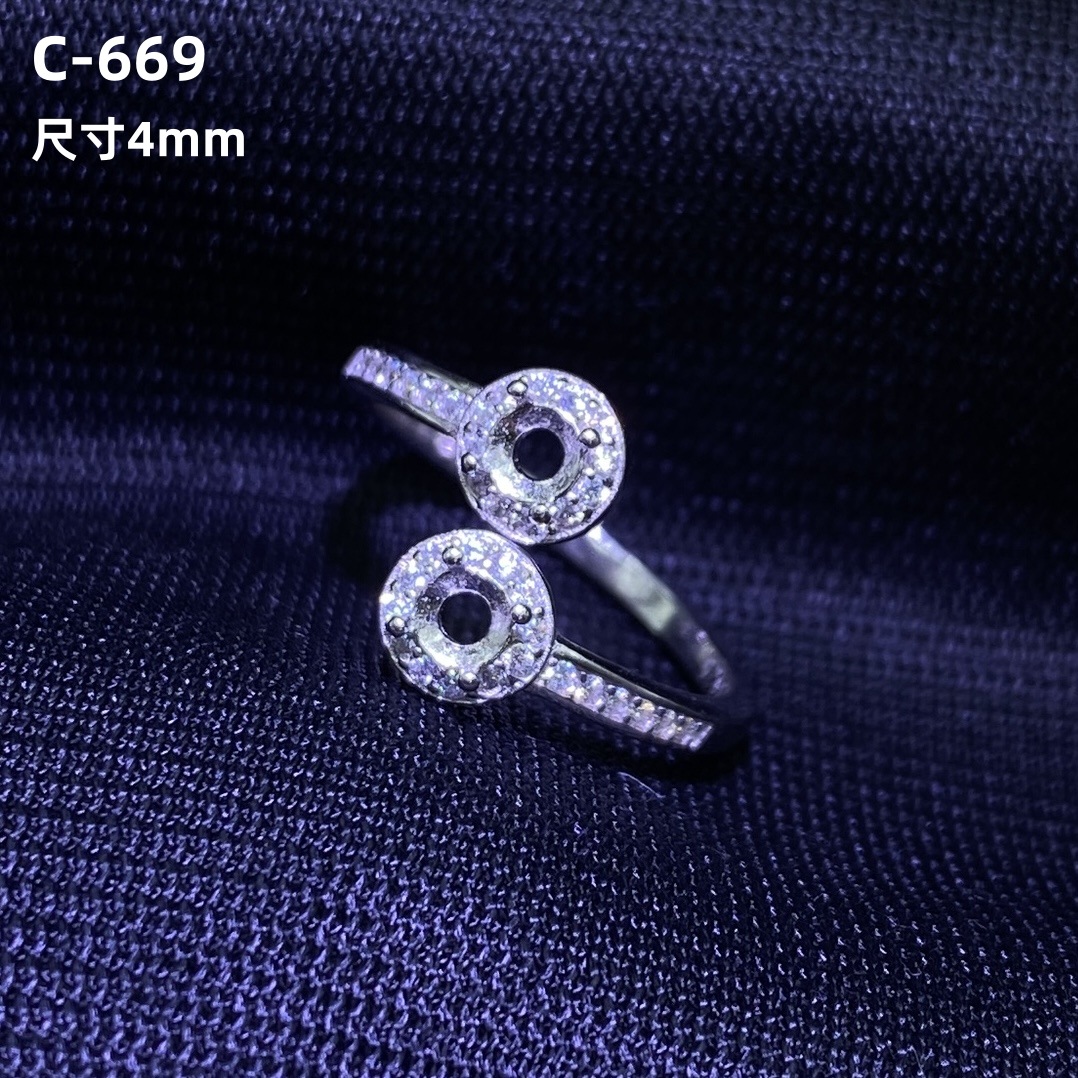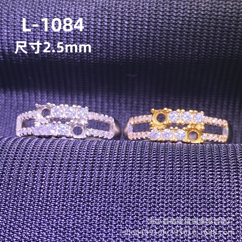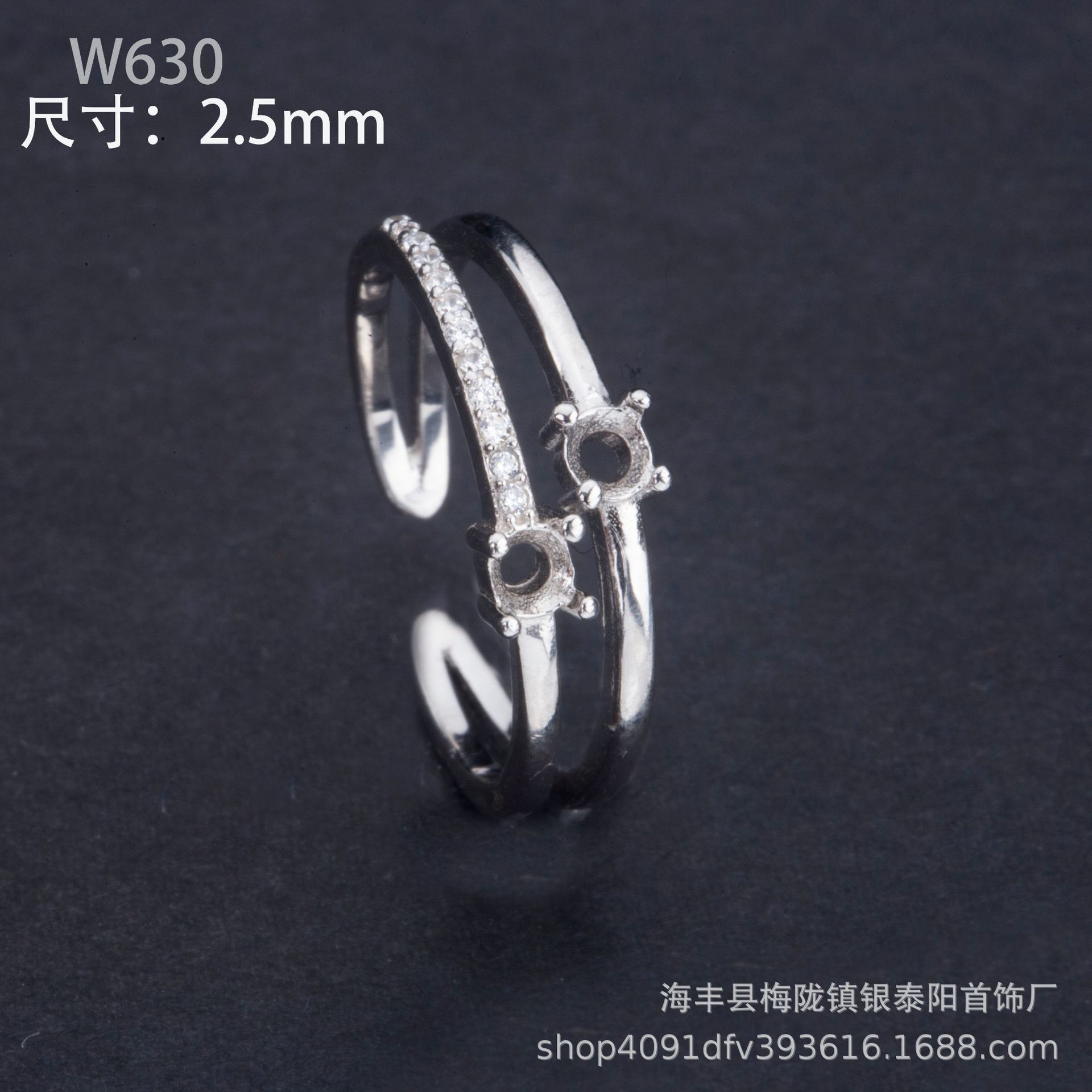 s925韩系简约纯银戒指女银托翡翠双蛋面空托缅料彩宝戒托饰品批发