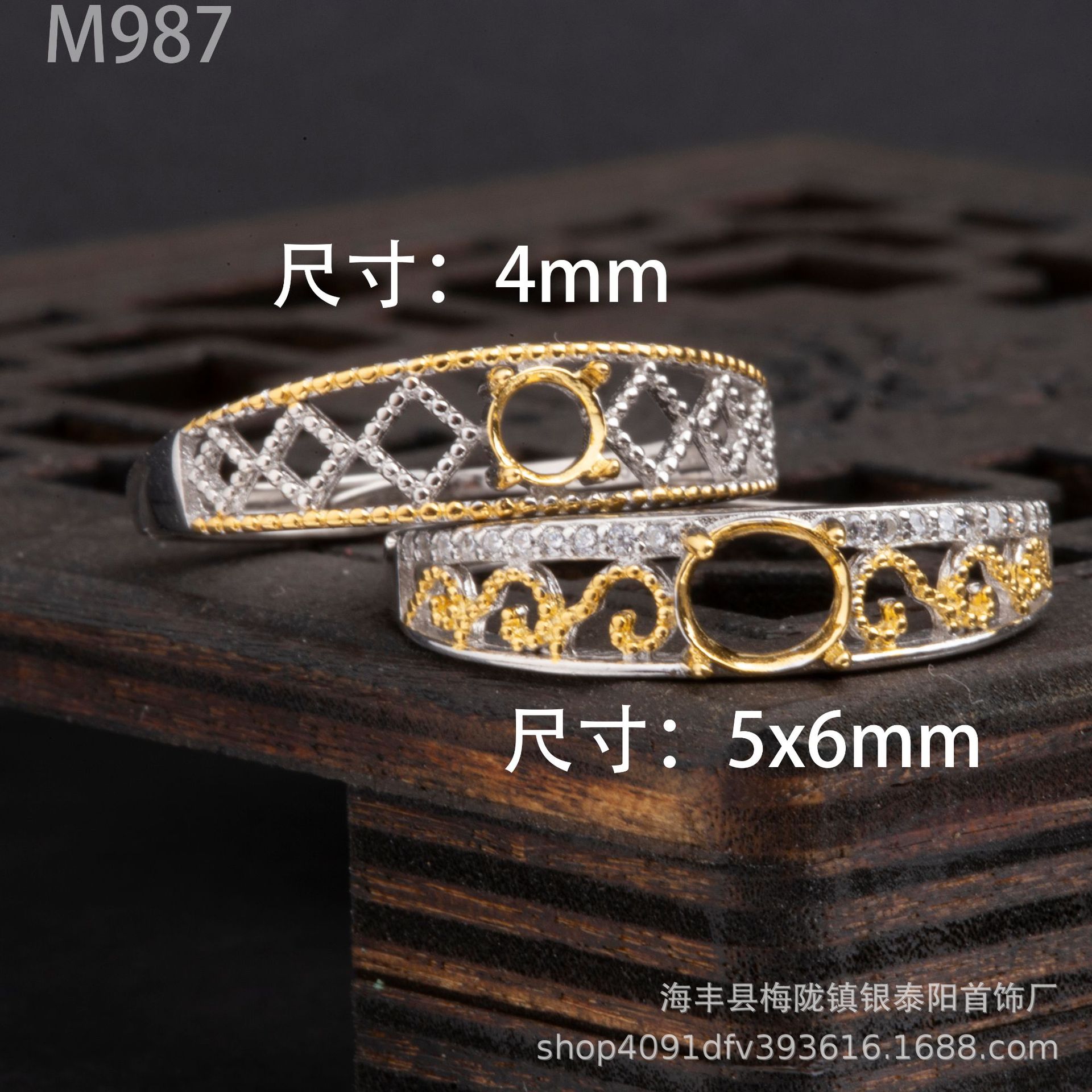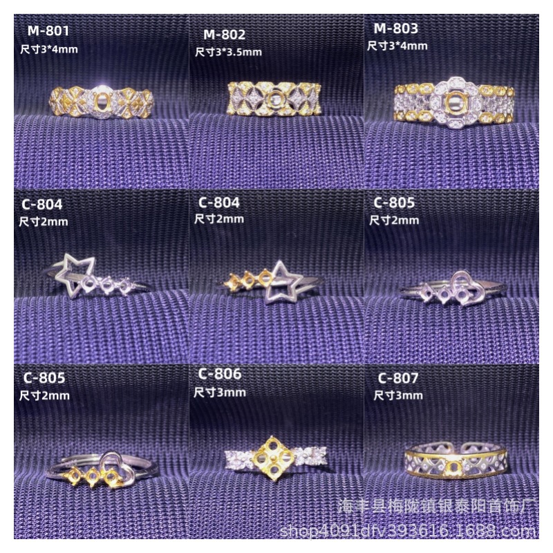 s925纯银戒指银托活口戒托女翡翠蛋面未镶嵌空托指环工厂批发