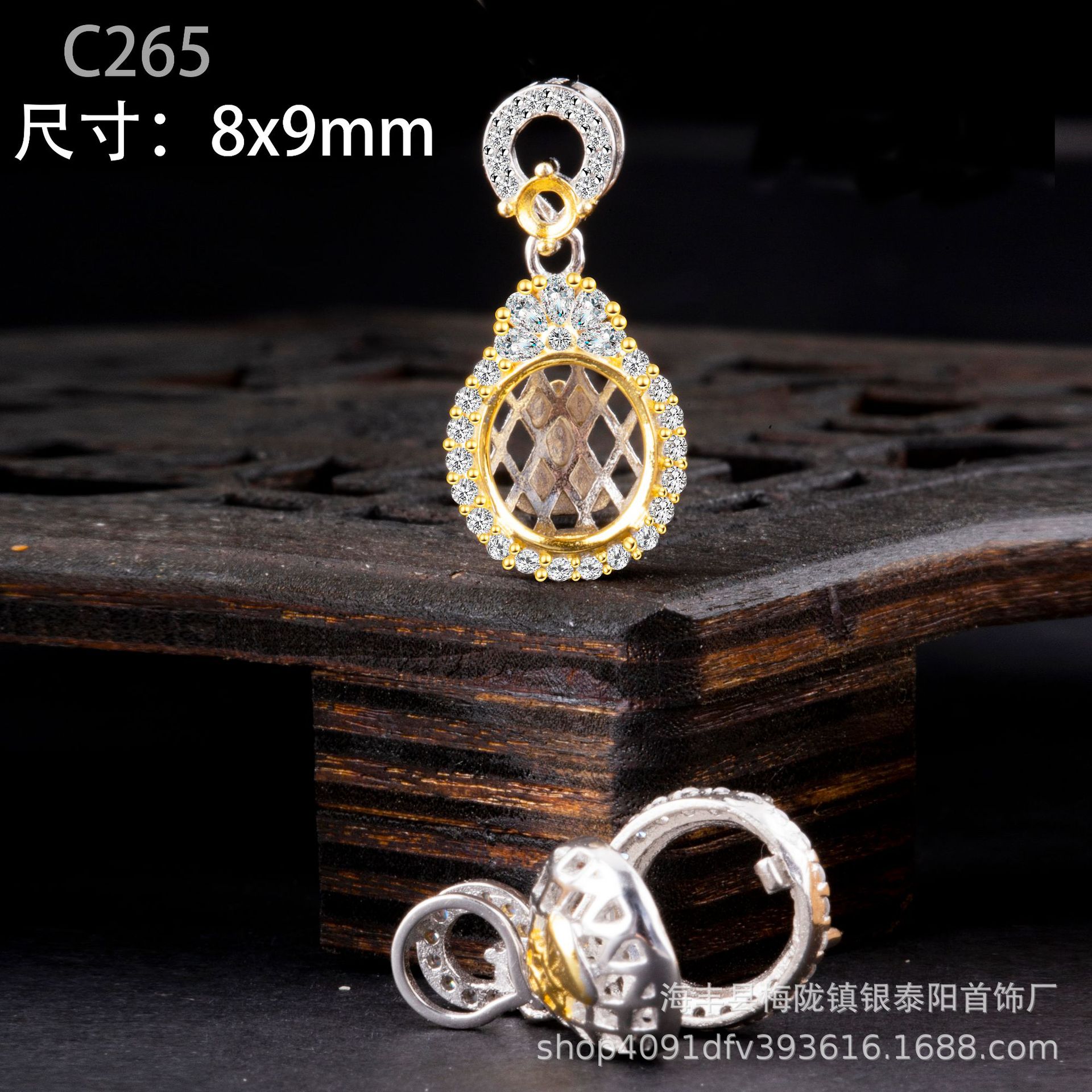 新款s925银托吊坠翡翠托配件未镶嵌蛋面翡翠玉石空托吊件工厂批发