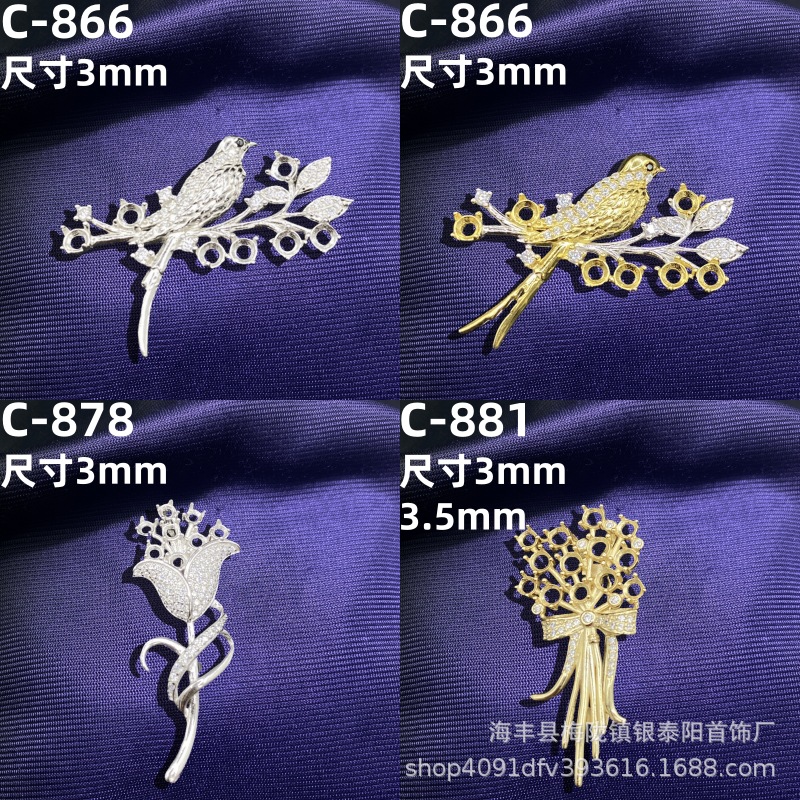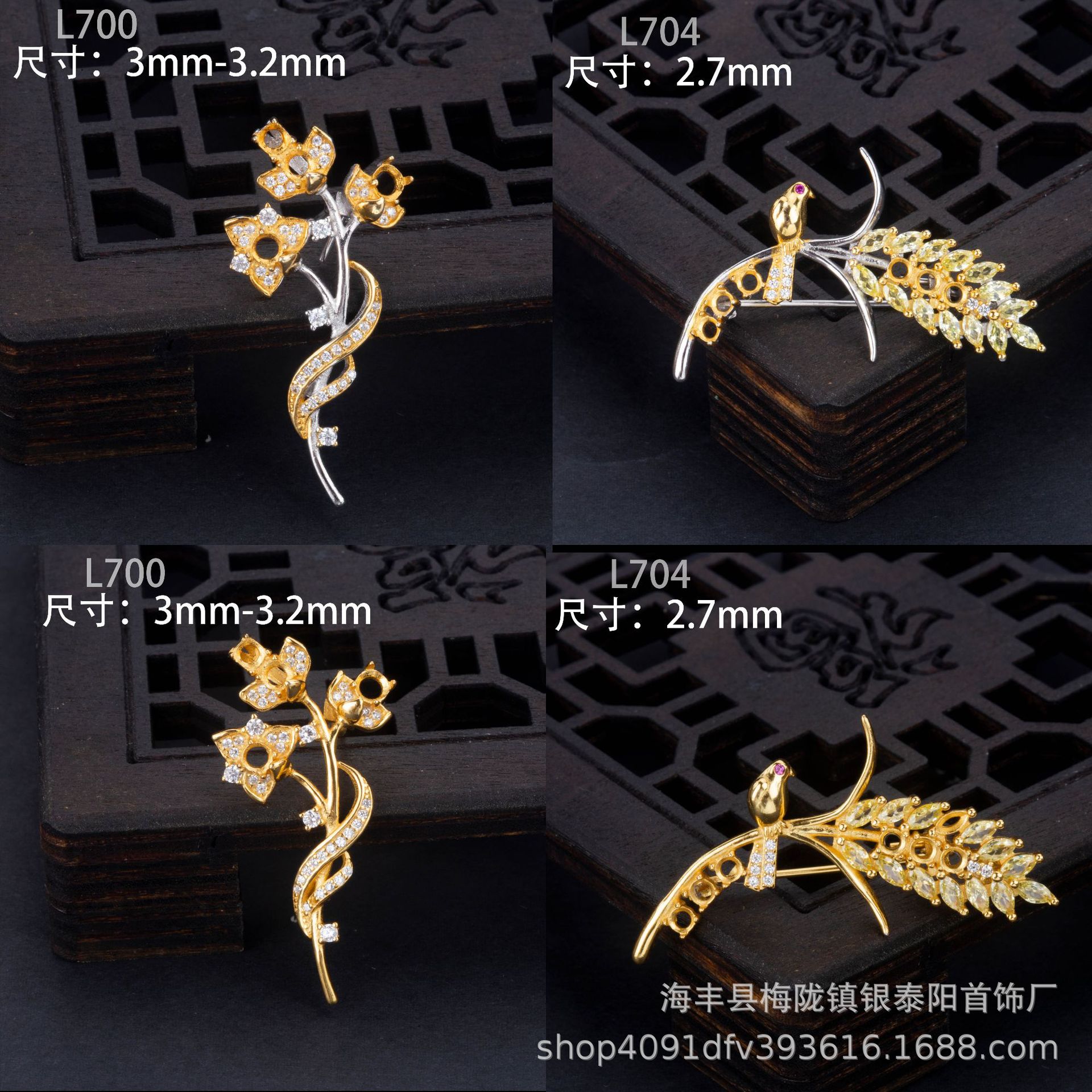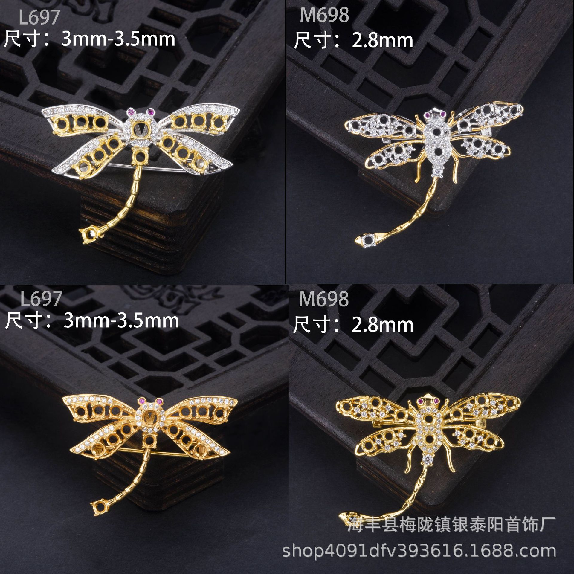 s925胸针银托吊坠危料翡翠托未镶嵌蛋面空托动物蜻蜓精工吊件