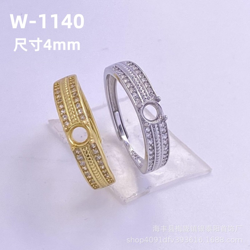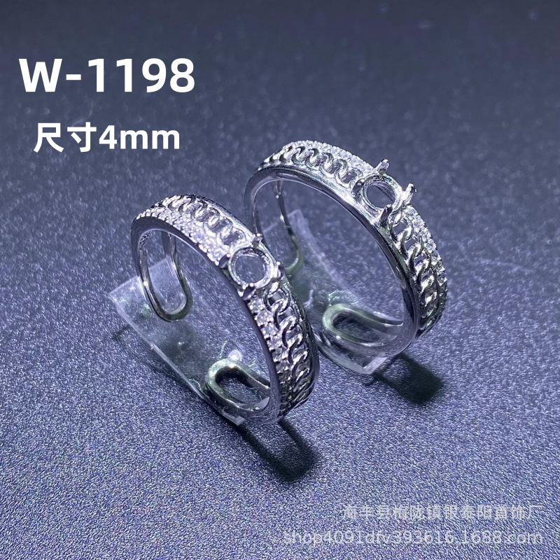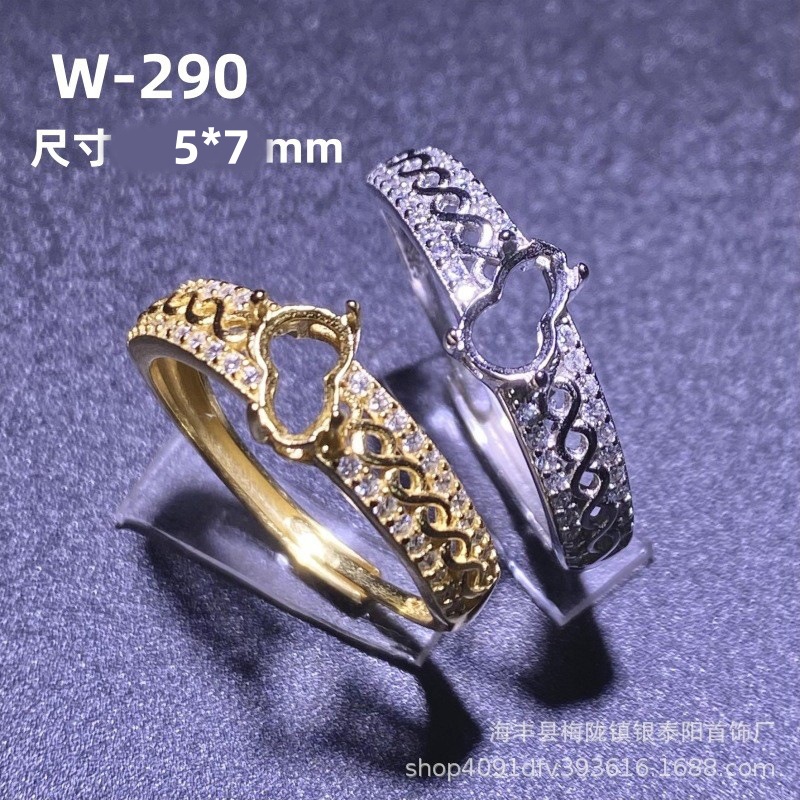 s925戒指银托精工简约时尚翡翠蛋面空托可调节未镶嵌戒托批发