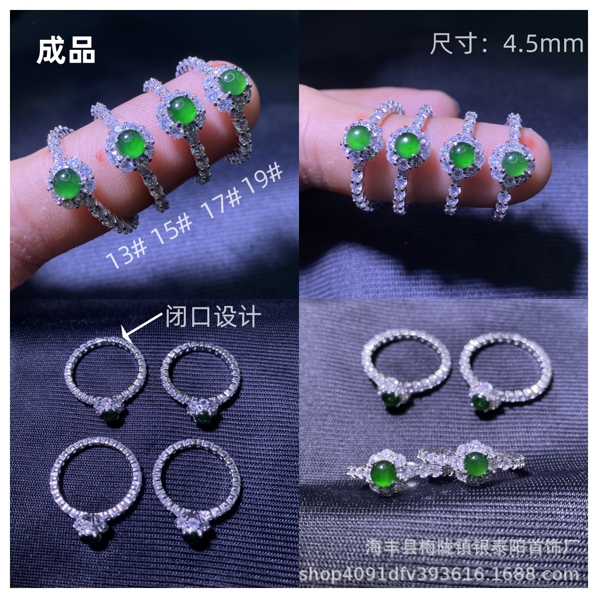 s925纯银豪华戒指女银托翡翠轻奢蛋面缅料指环空托未镶嵌危料直销