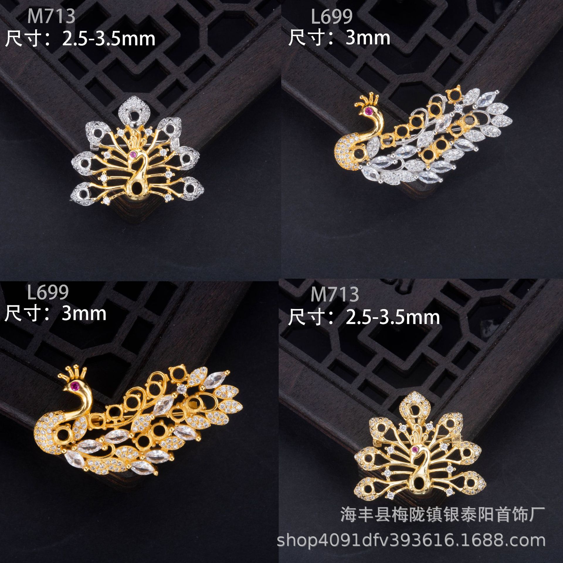 s925胸针银托缅料吊坠翡翠托未镶嵌蛋面时尚危料孔雀空托胸饰