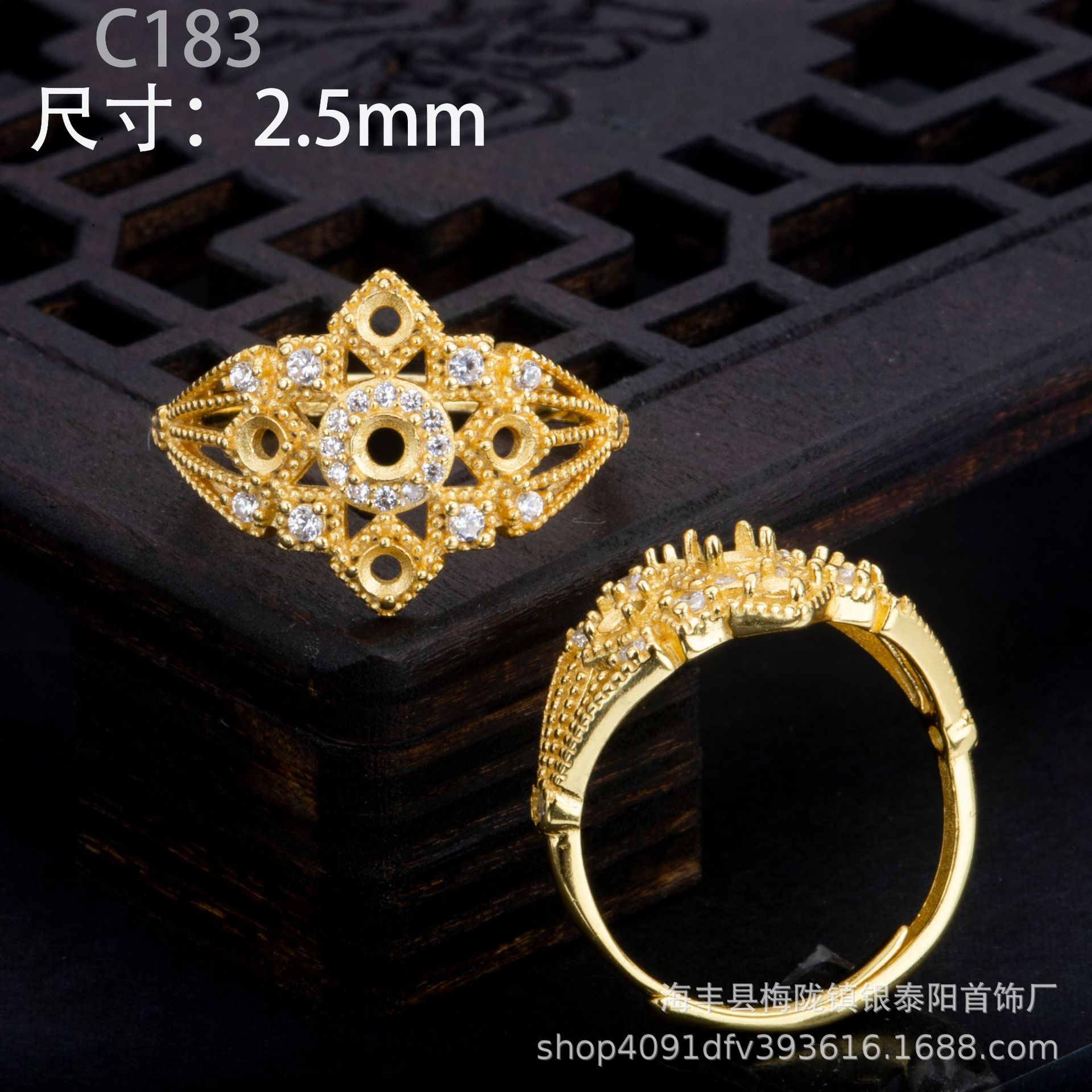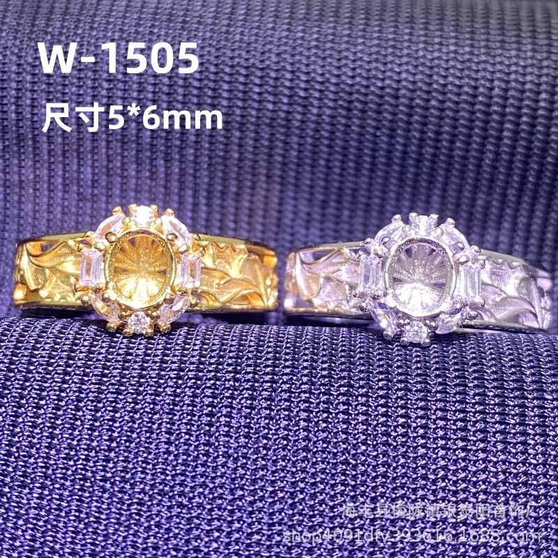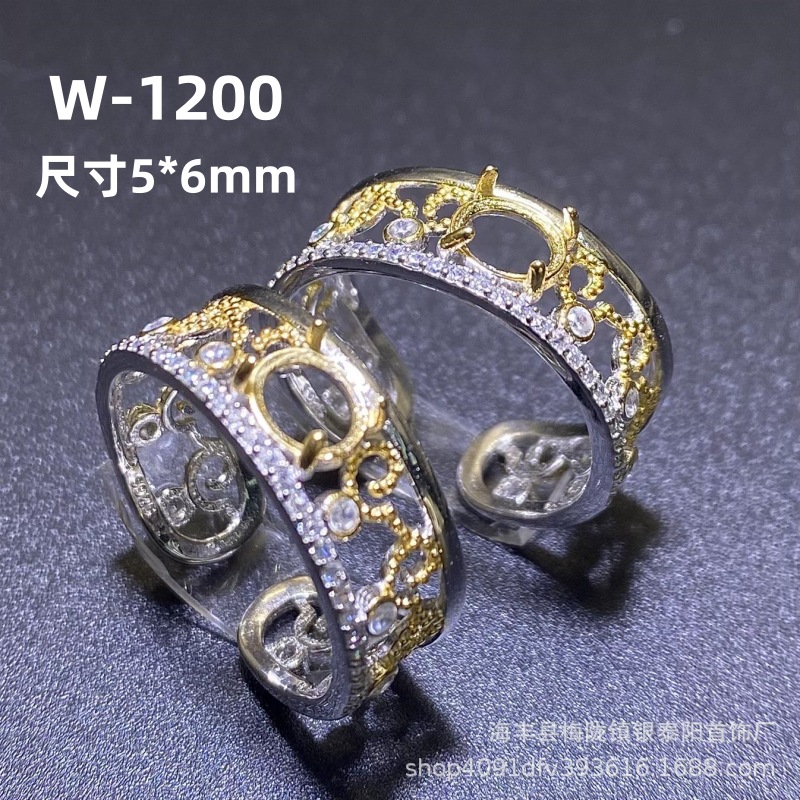 s925纯银豪华重工戒指女银托翡翠蛋面轻奢diy百搭戒托空托批发