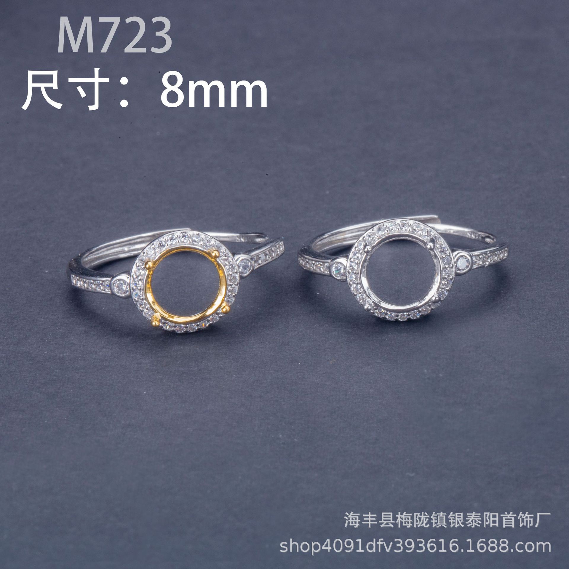 s925戒指银托精工简约时尚翡翠蛋面空托可调节未镶嵌工厂批发