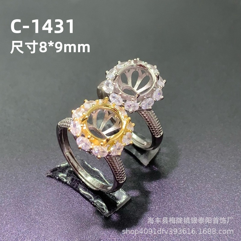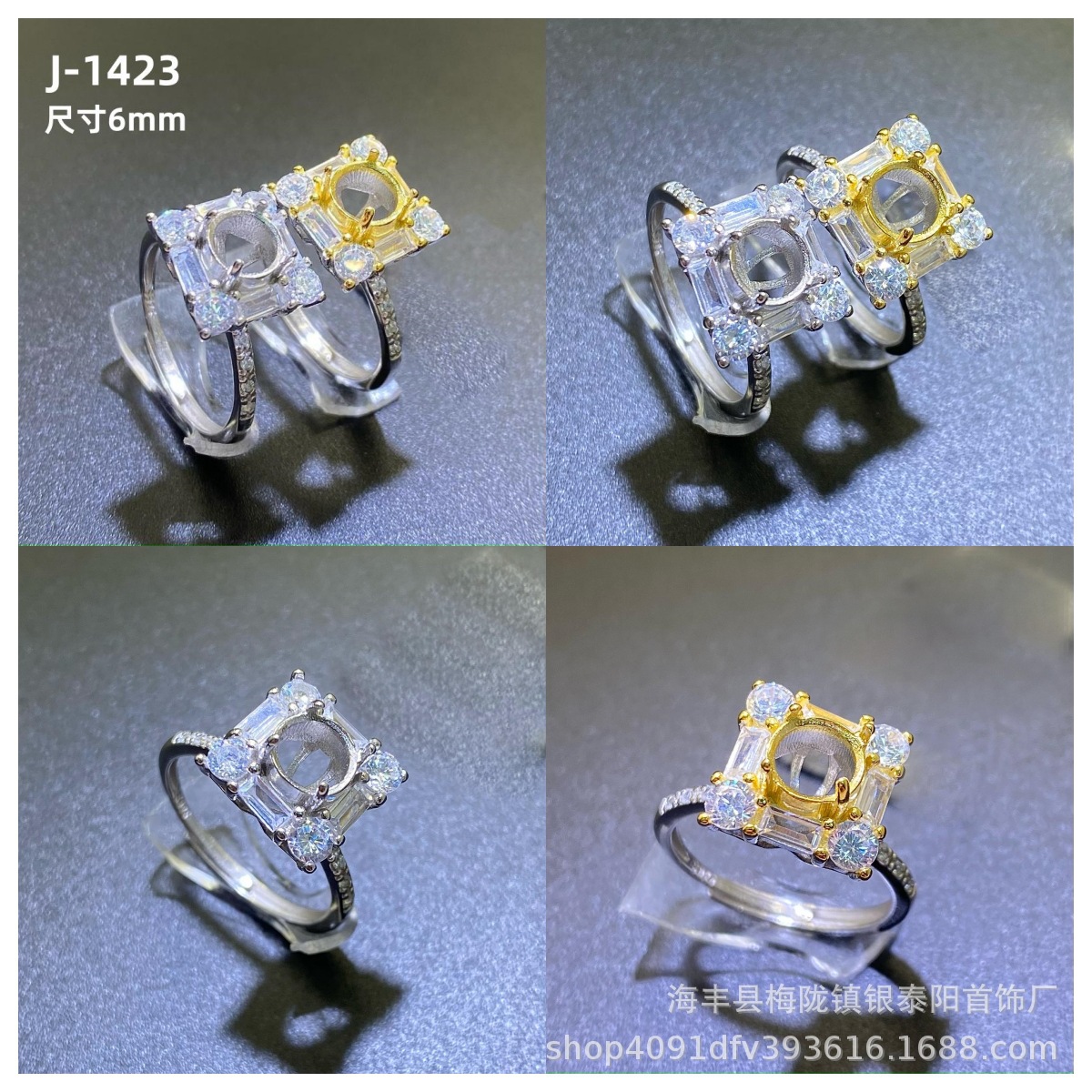 s925银托戒指女简约时尚群镶翡翠蛋面危料精工空托未镶嵌现货