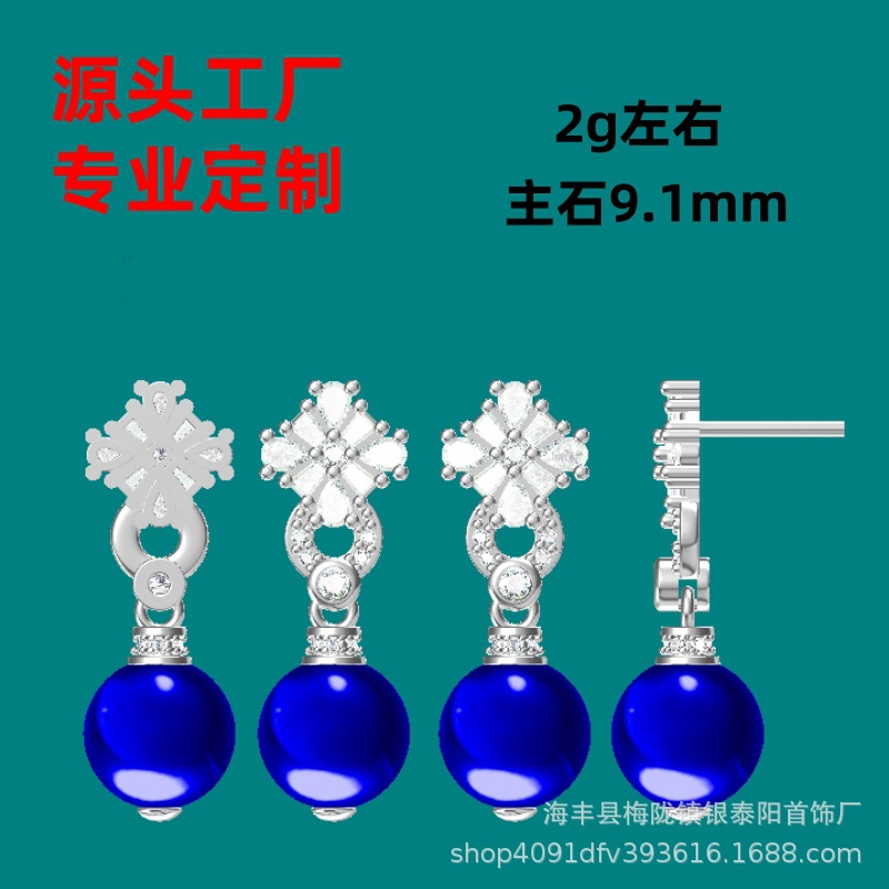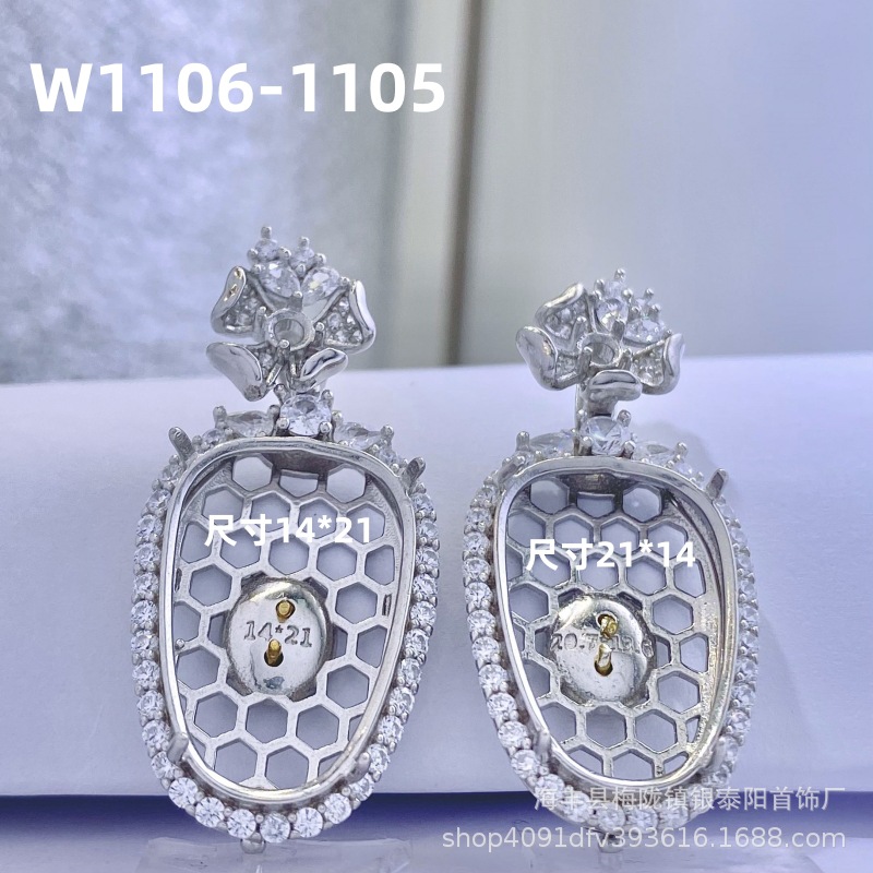 s925纯银耳钉托耳环高级感缅料危料天然翡翠空托配饰批发