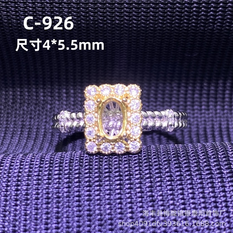 s925纯银托戒指高级感翡翠蛋面空托危料戒托女轻奢配饰diy工厂