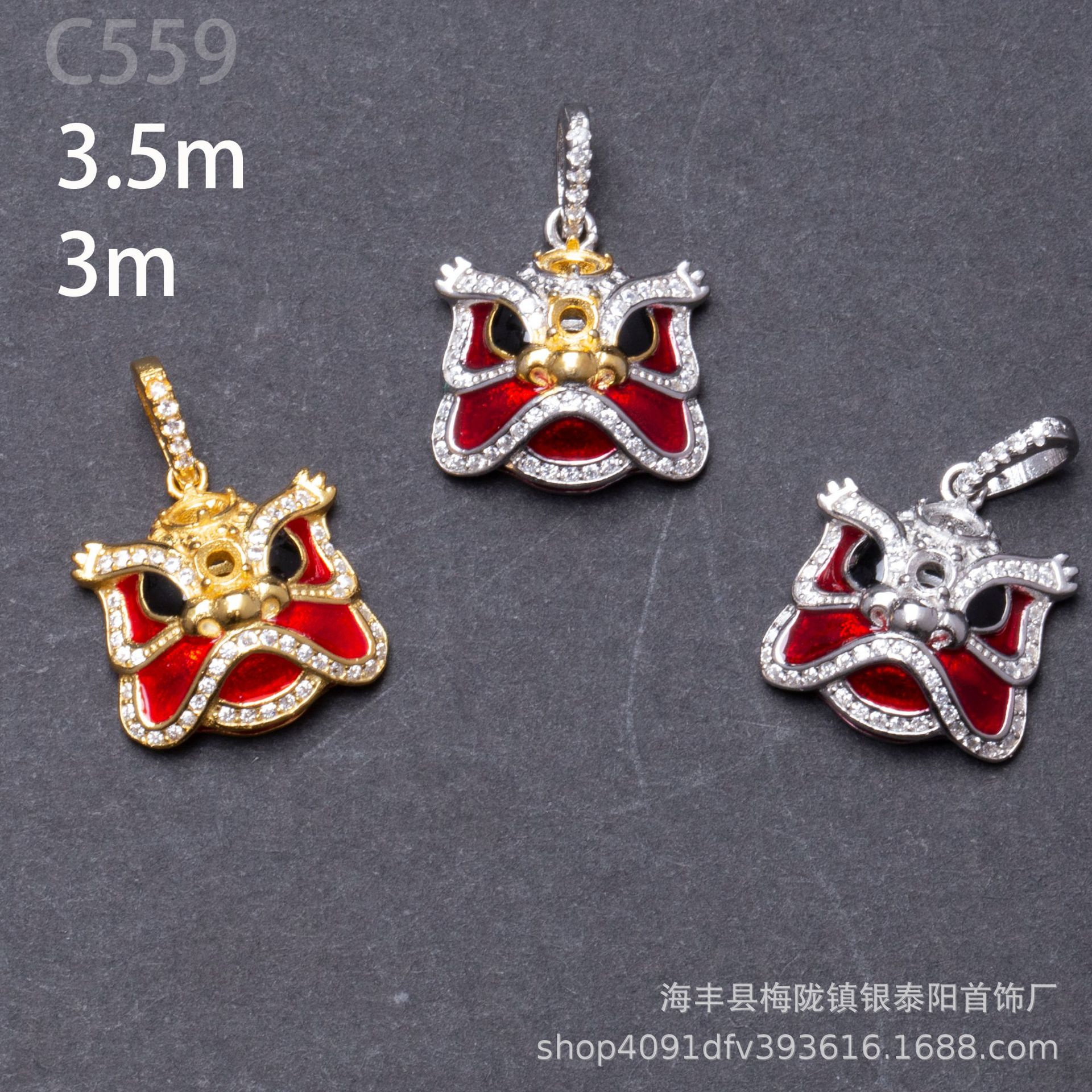 s925纯银国潮醒狮吊坠空托翡翠银托配件未镶嵌翡翠玉石银托