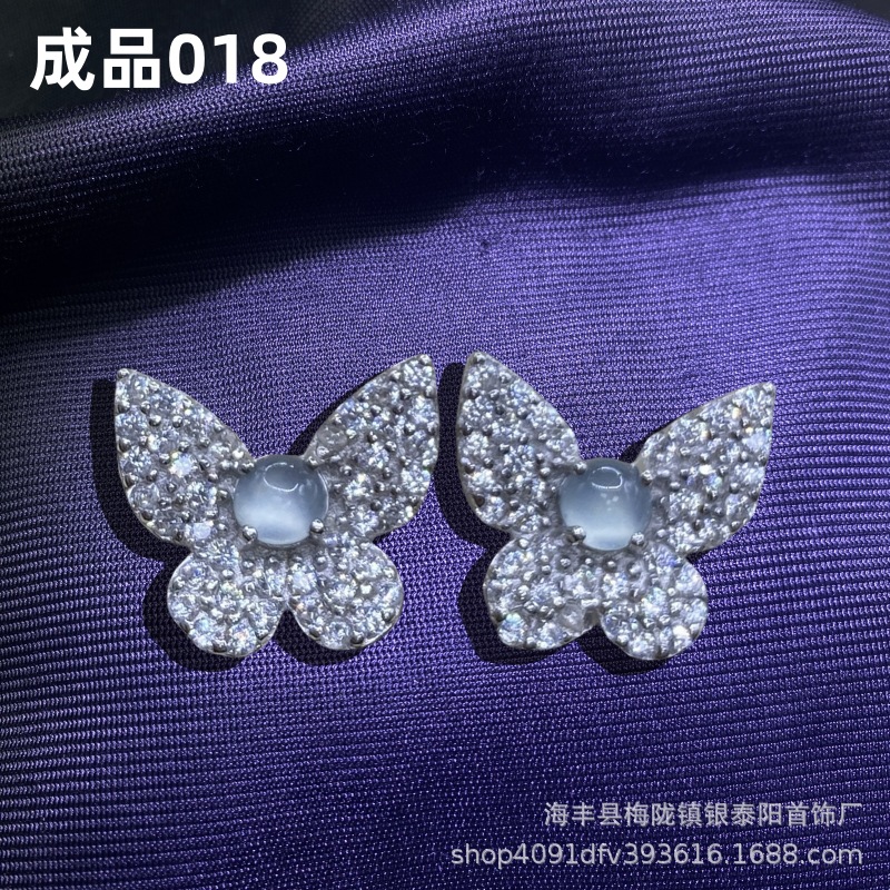 s925纯银托耳吊翡翠危料简约时尚蛋面未镶嵌女空托diy蝴蝶耳钉