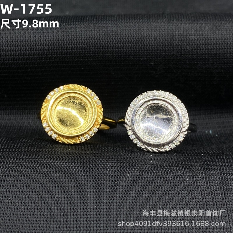 s925纯银圆牌戒指女银托翡翠蛋面高级感空托diy戒托小众饰品批发