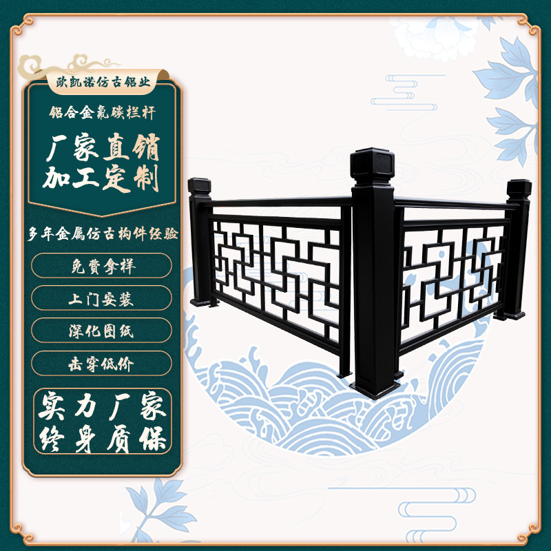 仿古铝代木中式栏杆铝合金栏杆镂空阳台栏杆围挡别墅楼梯扶手栏杆