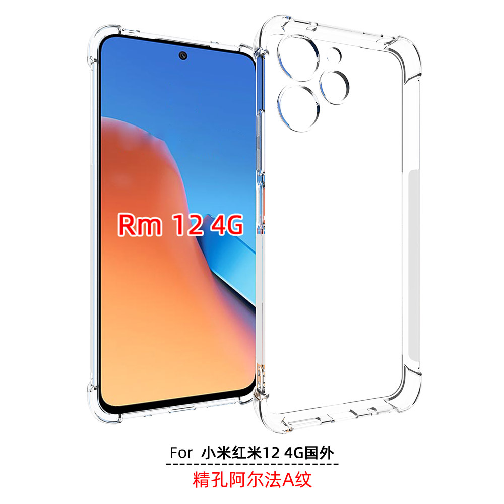 适用红米12 4G国外手机保护套三防四角防摔气囊壳适用透明素材Tpu