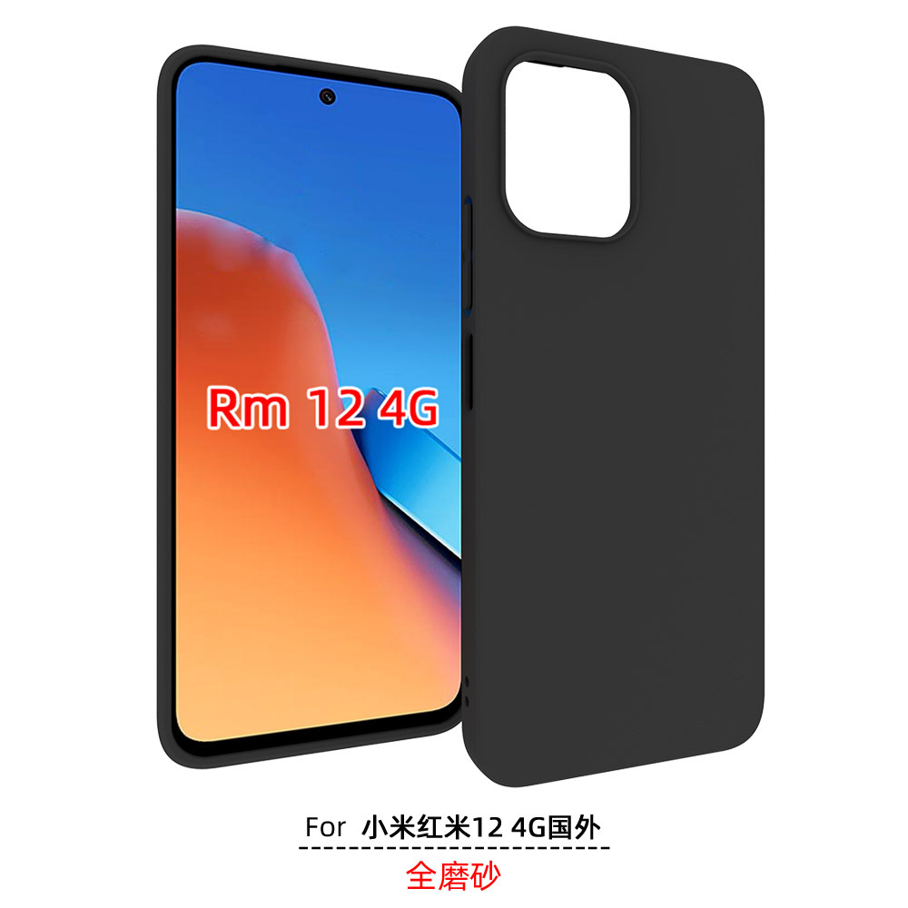 适用于红米12 4G国外手机壳全磨砂黑色保护套贴皮素材TPU软胶外壳
