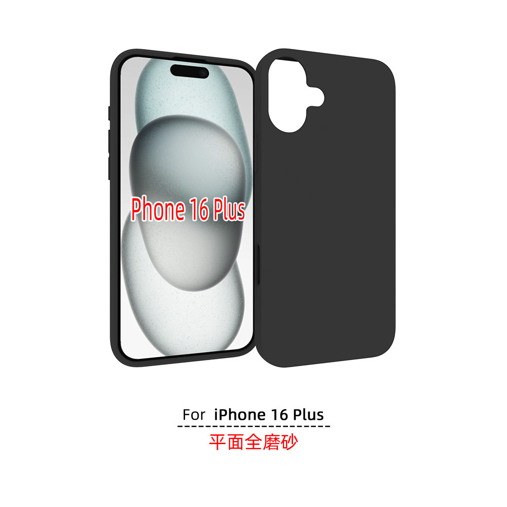 适用于iphone 16 plus平面全磨砂手机壳软胶保护套黑色素材