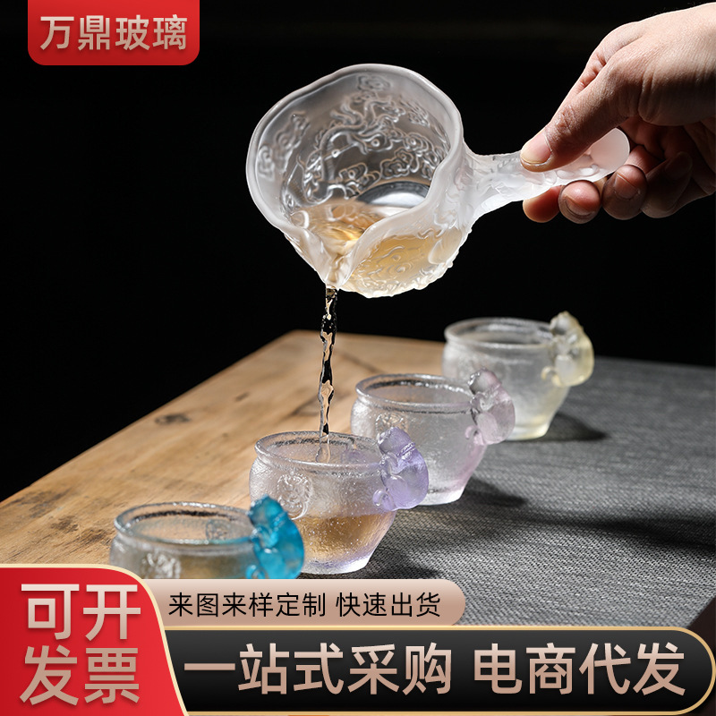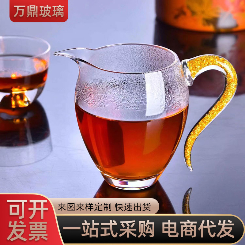 琉璃浮雕侧把公道杯分茶器加厚耐热茶海功夫茶具公杯玻璃杯茶杯