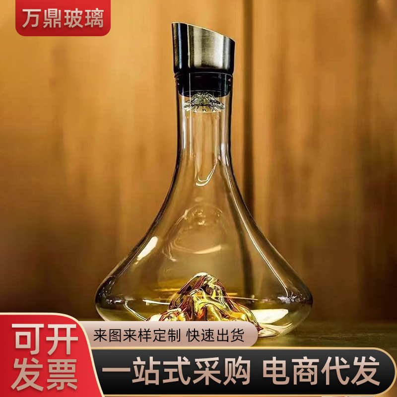 欧式轻奢透明冰山瀑布醒酒器家用过滤式金山快速醒酒葡萄酒分酒器