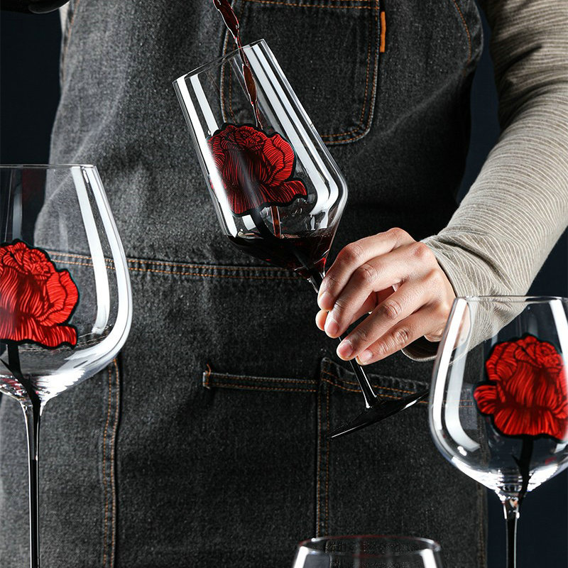创意情侣红酒杯大号小号红玫瑰花烙印欧式水晶玻璃杯套装葡萄酒杯