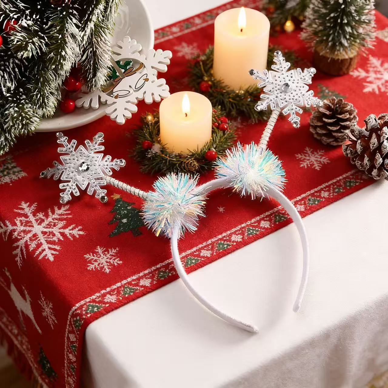 新款圣诞白色雪花发箍圣诞头饰发箍仙女拍照道具头饰创意细丝头箍