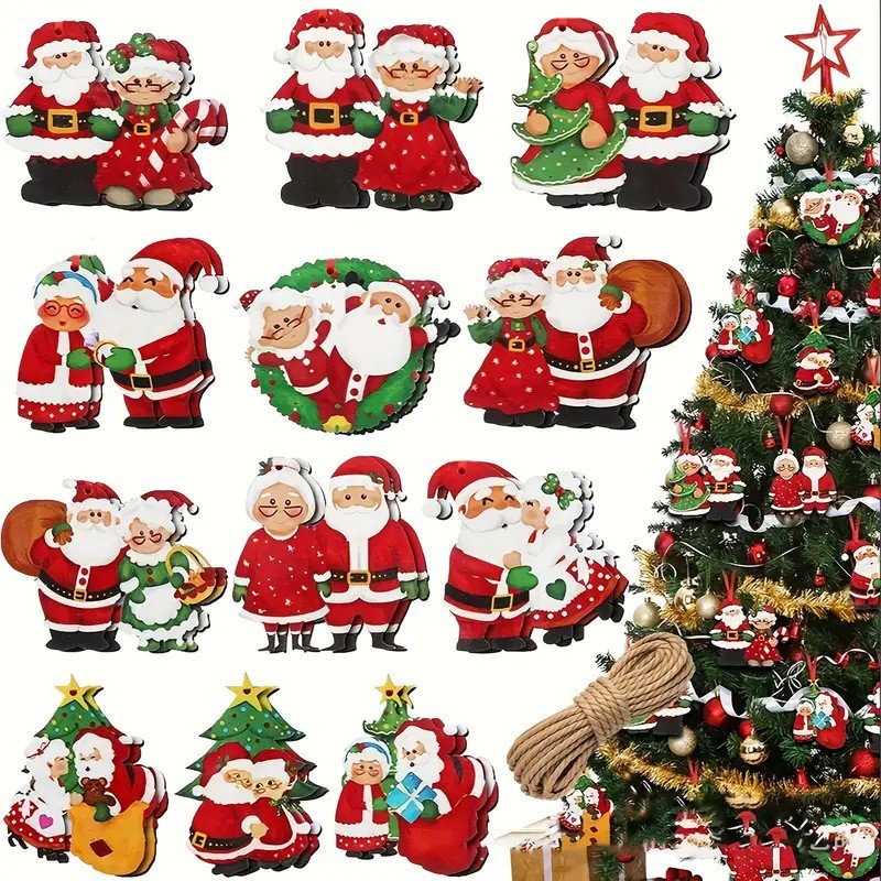 36件圣诞老人木质装饰品挂件圣诞节情人节派对家居装饰品