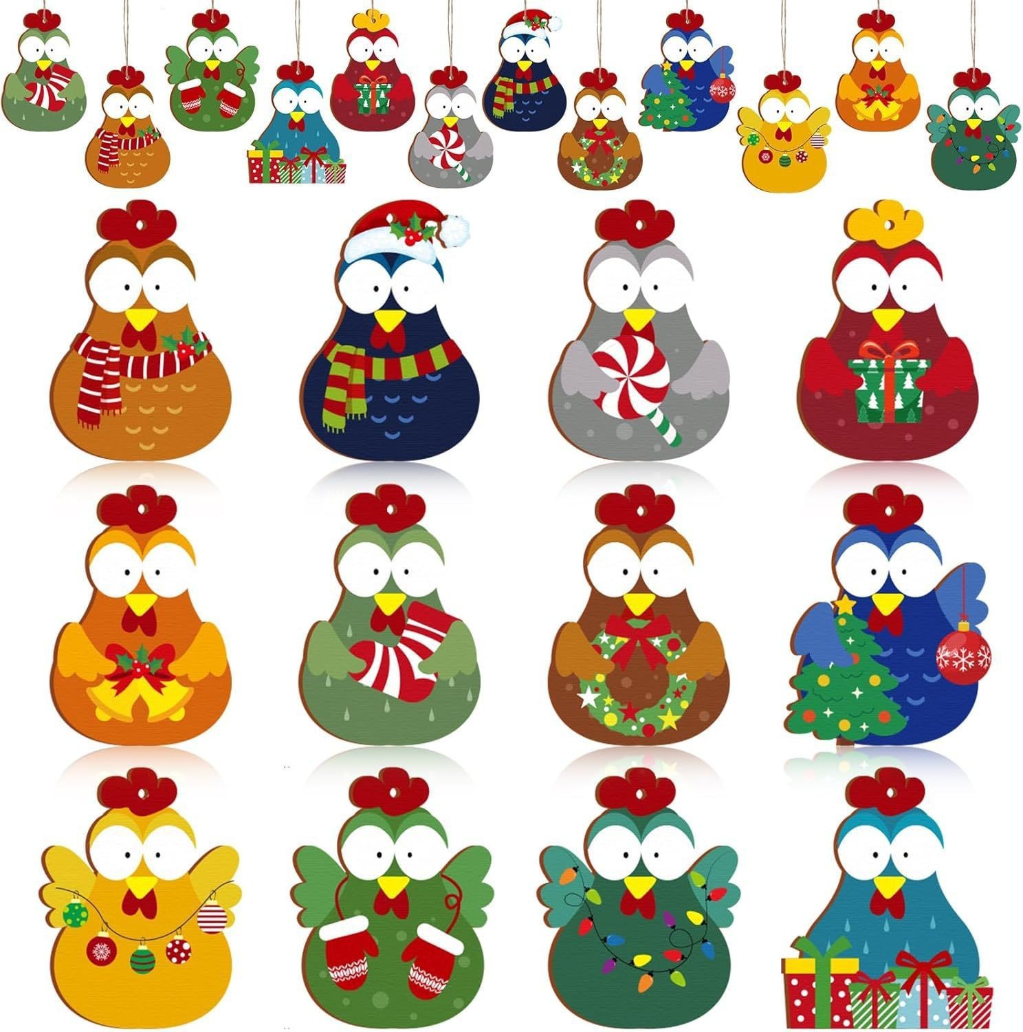 24 件天使圣诞饰品木制圣诞树装饰乡村挂饰农舍天使圣诞装饰品