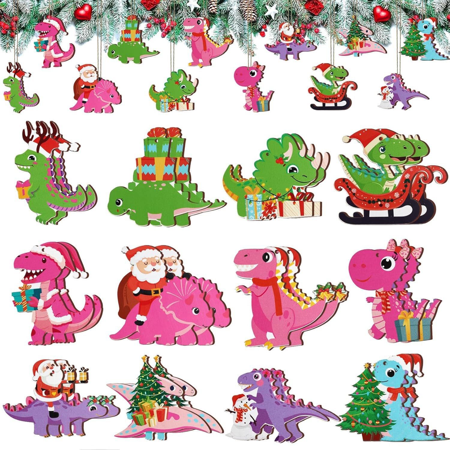 跨境新品圣诞木质悬挂饰品 创意圣诞恐龙木质家居装饰品挂件