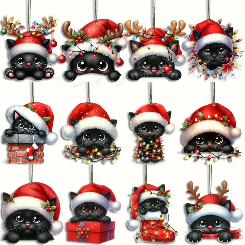 新款圣诞帽可爱小猫木制挂饰节日派对暖心家居饰品