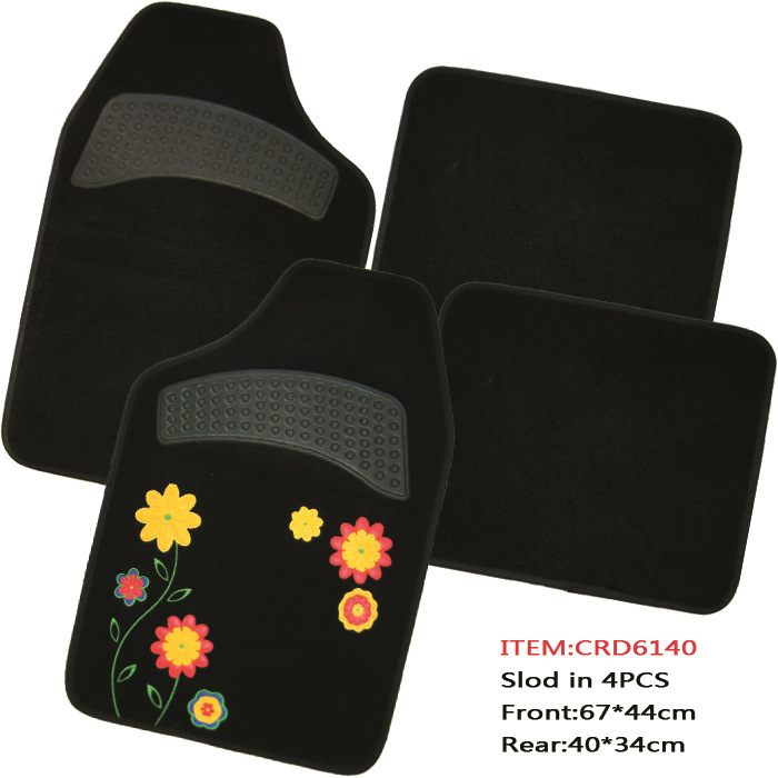 厂家直销刺绣汽车脚垫PVC防滑车垫天鹅绒地毯亚麻绣花通用脚垫
